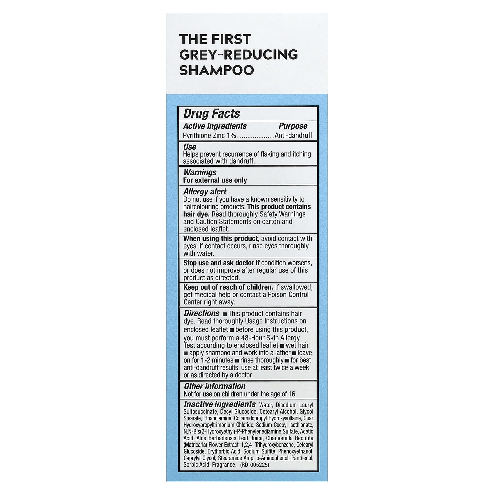 Необходимо выполнять 48-часовой тест на аллергическую реакцию перед применением и всякий раз, когда вы делаете перерыв в использовании этого шампуня на 2 недели подряд или больше. Прочитайте инструкции в прилагаемом вкладыше.