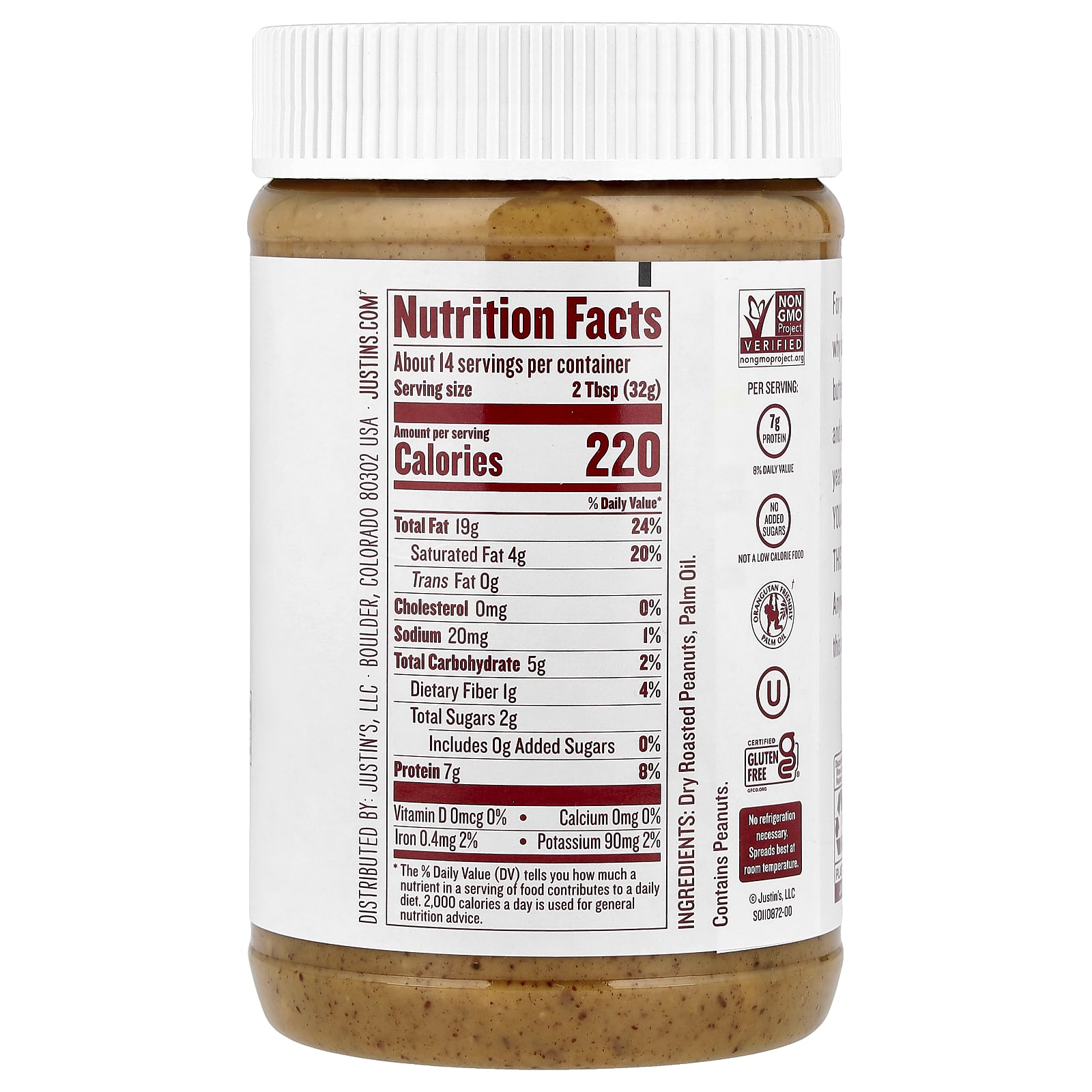 В течение многих лет меня спрашивали: «Джастин, почему бы вам не сделать хрустящую арахисовую пасту с вашим уникальным помолом и вкусным арахисом?» И годами я ответил: «Что вы сказали !? Я не могу раскусить вас из-за этой супермолотой мельницы для орехов!» Как бы то ни было, эти годы прошли. Наслаждайтесь этой хрустящей арахисовой пастой.