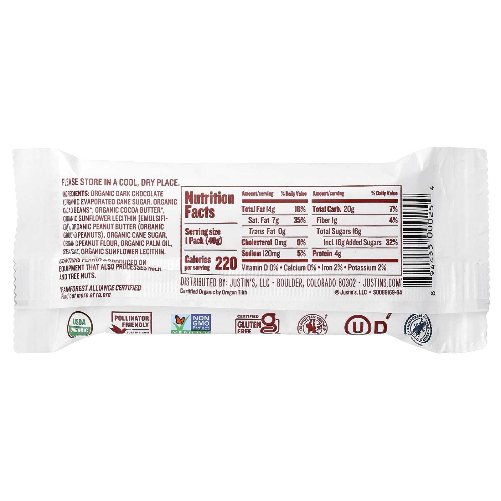 Органический темный шоколад (органический тростниковый сахар, органические какао-бобы *, органическое какао-масло*, органический подсолнечный лецитин [эмульгатор]), органическое арахисовое масло (органический молотый арахис), органический тростниковый сахар, органическая арахисовая мука, органическое пальмовое масло, морская соль, органический подсолнечный лецитин.