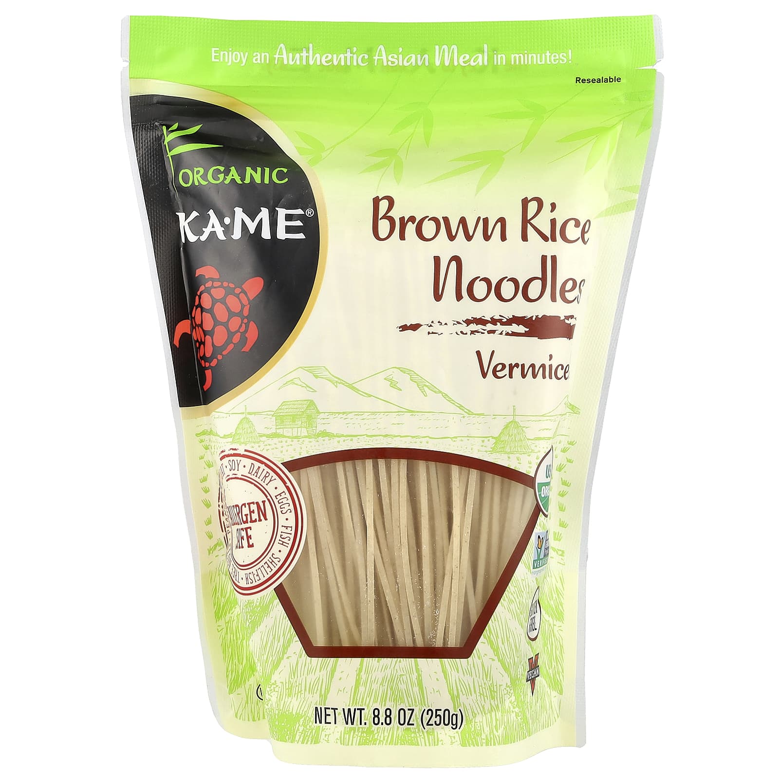 Органическая рисовая лапша Ka-me премиального качества, выращенная и собранная на органической ферме в Таиланде, без глютена. Это традиционный ингредиент, который используется во многих тайских рецептах и блюдах Юго-Восточной Азии. Его можно подавать как в горячем, так и в холодном виде, добавлять в жаркое, супы и салаты.