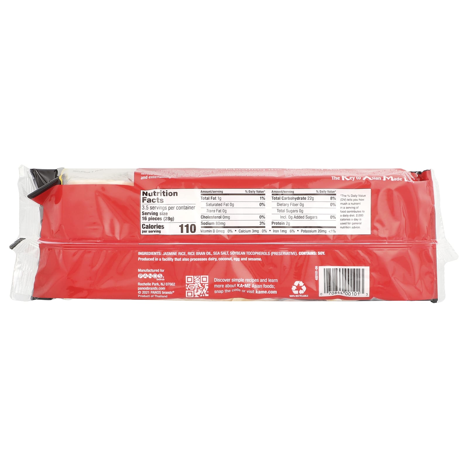 Рисовые крекеры, известные в Японии как рисовые сембеи, являются наиболее традиционными и популярными японскими закусками. Рисовые крекеры KA · ME изготовлены из жасминового риса, который придает ароматный аромат и отличный вкус. Рисовые крекеры KA · ME, слегка приправленные традиционными азиатскими ароматами и современными специями, не содержат искусственных ароматизаторов или красителей, сертифицированы на отсутствие глютена и не содержат ГМО. Оригинальные рисовые крекеры KA · ME можно употреблять отдельно, подавать с сыром или соусами. Они идеально подходят для создания небольших тарелок для совместного использования и развлечения.