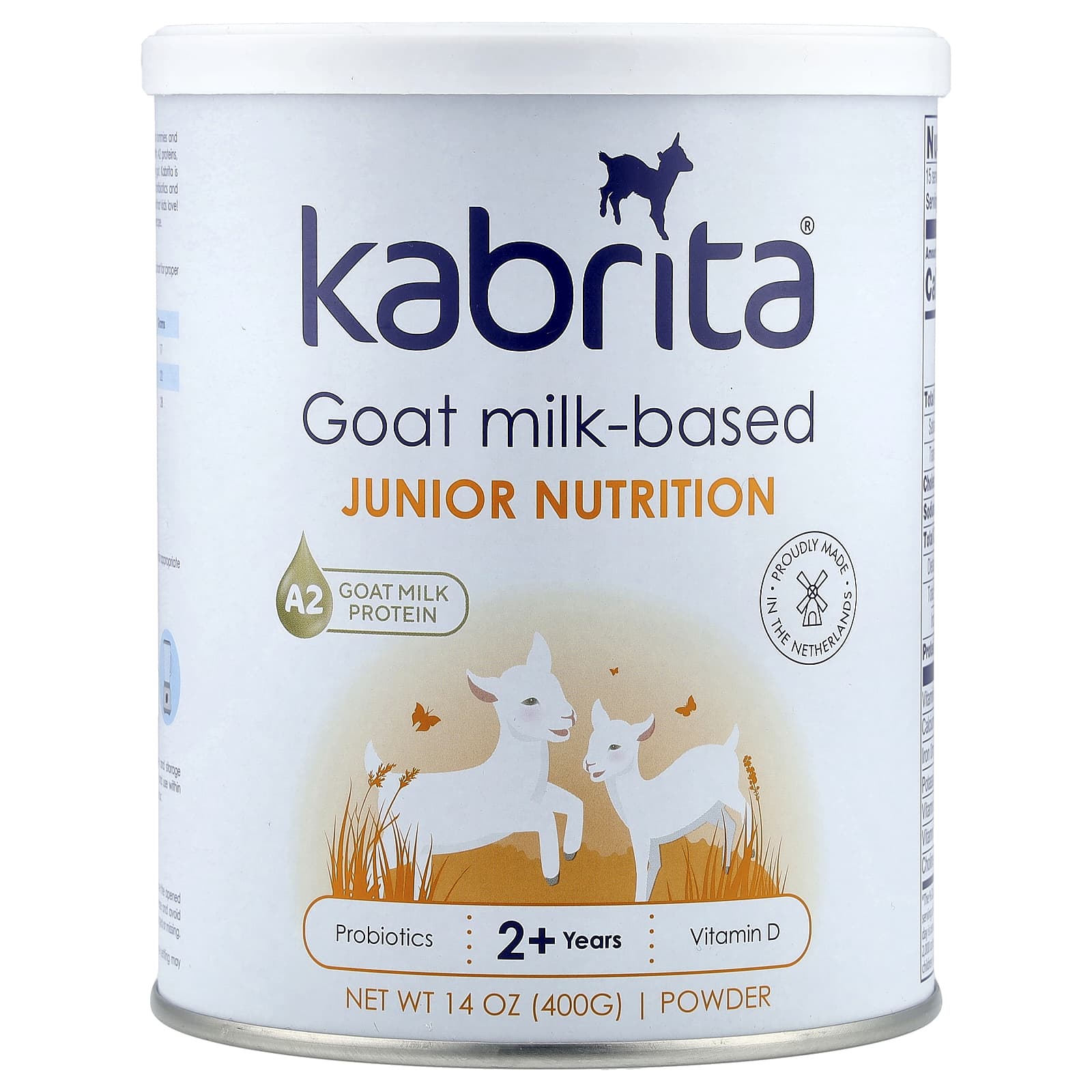 Изготовленная из козьего молока, Kabrita Junior от природы нежна для животиков и обогащена важными питательными веществами, такими как витамины C, D, холин и ДГК. Благодаря протеинам A2, натуральным пребиотикам и добавленным пробиотикам Kabrita Junior поддерживает здоровье кишечника. Kabrita производится в Нидерландах, где строгие европейские стандарты ограничивают использование антибиотиков и гормонов роста. Kabrita Junior не содержит ГМО и имеет мягкий, натуральный сладкий вкус и запах, который нравится детям! Просто добавьте воды, чтобы получить стакан вкусного молока, или добавьте в смузи или любимый рецепт.