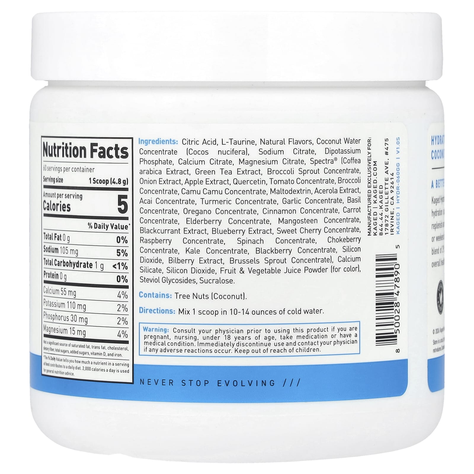 Kaged Hydration - это восхитительный напиток с электролитами, который поддерживает водный баланс без сахара. Это освежающий способ пополнить баланс жидкости во время тренировок, в рабочие дни или на выходных. Кроме того, мы добавили SPECTRA®, премиальную смесь из 29 экстрактов фруктов, овощей и трав, а также таурина для общей поддержки здоровья.