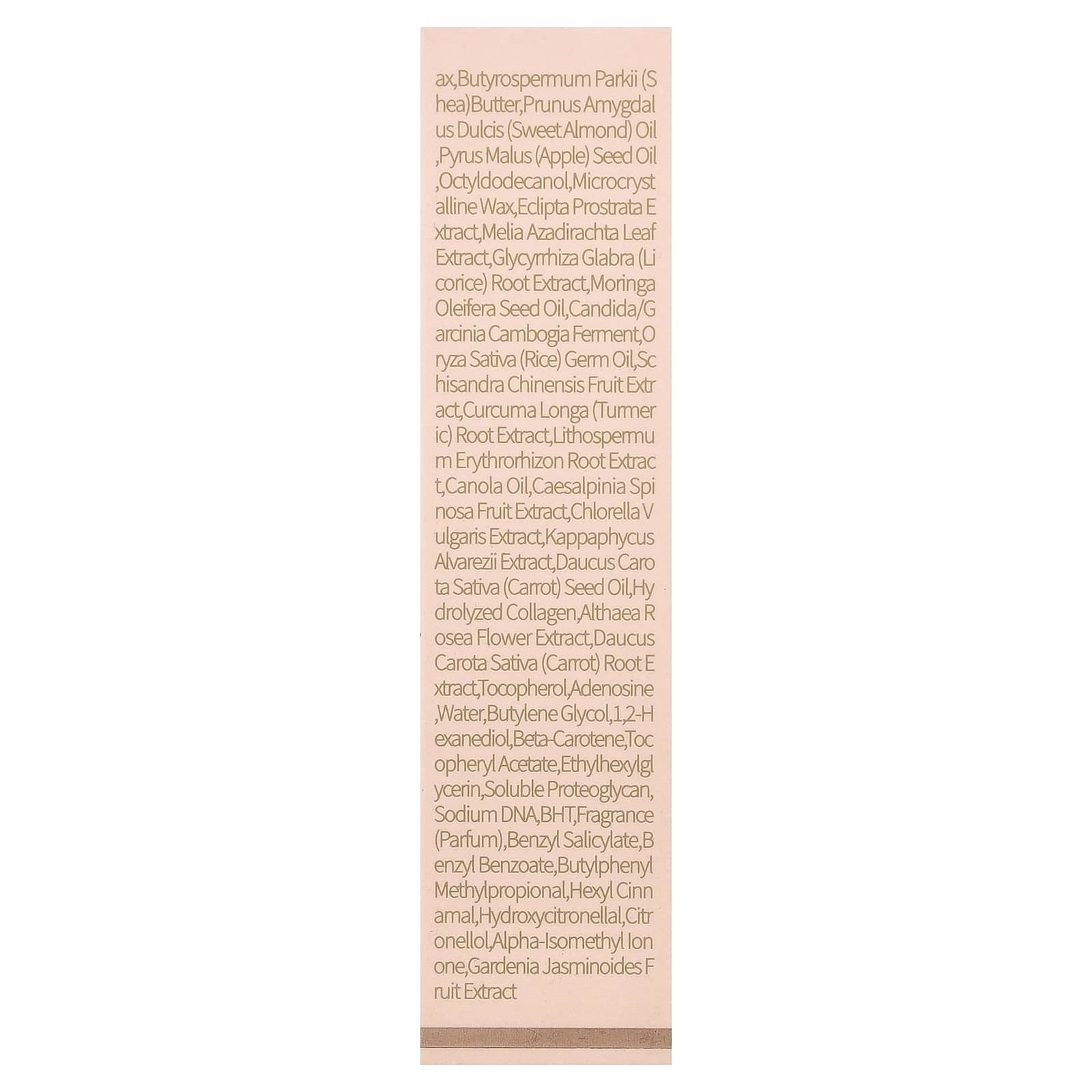 Подсолнечное масло (Helianthus annuus), полиглицерил-2 триизостеарат, канделильский воск (Euphorbia cerifera), масло ши (Butyrospermum parkii), масло сладкого миндаля (Prunus amygdalus dulcis), масло косточек яблока (Pyrus malus), октилдодеканол, микрокристаллический воск, экстракт эклипты простёртой (Eclipta prostrata), экстракт листьев дерева ним (Melia azadirachta), экстракт корня солодки (Glycyrrhiza glabra), масло из семян моринги масличной (Moringa oleifera), продукт ферментации гарцинии камбоджийской (Garcinia cambogia), масло зародышей риса (Oryza sativa), экстракт плодов лимонника (Schisandra chinensis), экстракт корня куркумы (Curcuma longa), экстракт корня воробейника (Lithospermum erythrorhizon), рапсовое масло, экстракт плодов тары (Caesalpinia spinosa), экстракт хлореллы (Chlorella vulgaris), экстракт красной водоросли (Kappaphycus alvarezii), масло из семян моркови (Daucus carota sativa), гидролизованный коллаген, экстракт цветков штокрозы розовой (Althaea rosea), экстракт корнеплода моркови (Daucus carota sativa), токоферол, аденозиновая вода, бутиленгликоль, 1,2-гександиол, бета-каротин, токоферилацетат, этилгексилглицерин, растворимый протеогликан, ДНК натрия, бутилгидрокситолуол, отдушка (парфюмерная композиция), бензилсалицилат, бензилбензоат, бутилфенил метилпропиональ, гексил циннамал, гидроксицитронеллаль, цитронеллол, альфа-изометилионон, экстракт плодов гардении жасминоидной (Gardenia jasminoides).