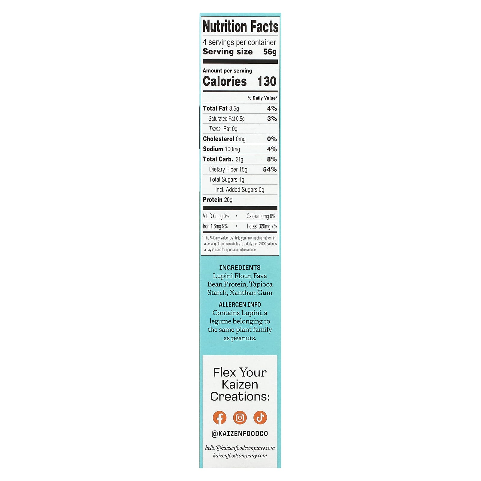 Мука из люпини, протеин из фасоли, тапиоковый крахмал, ксантановая камедь.