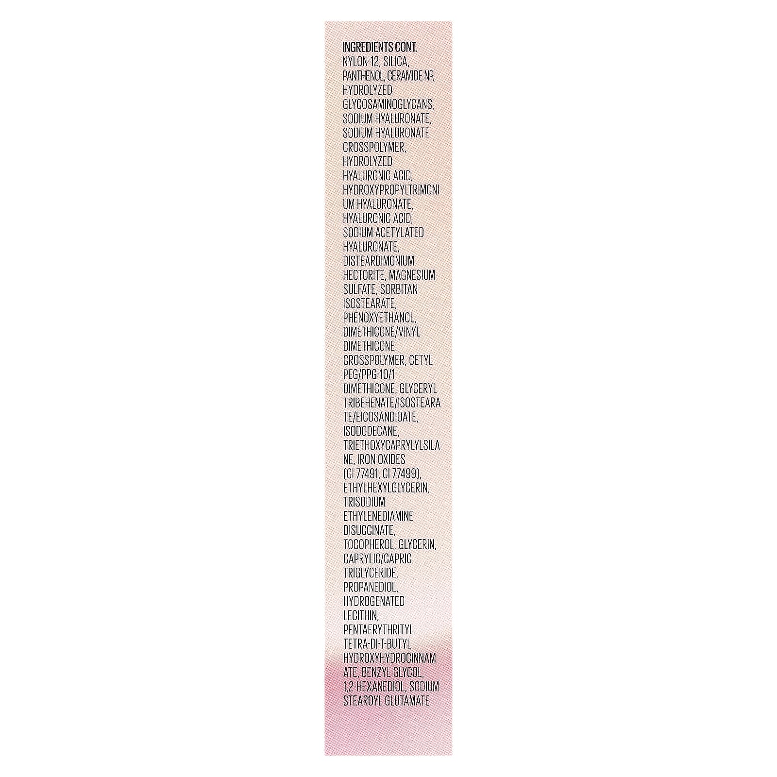 Вода, диоксид титана (CI 77891), циклопентасилоксан, диметикон, бутиленгликоль, цетилэтилгексаноат, дикаприлил карбонат, ПЭГ-10 диметикон, триметилсилоксисиликат, каприлил метикон, пентилен гликоль, оксиды железа (CI 77492), метил метакрилат кроссполимер, нейлон-12, диоксид кремния, пантенол, керамид NP, гидролизованные гликозаминогликаны, гиалуронат натрия, гиалуронат натрия кроссполимер, гидролизованная гиалуроновая кислота, гиалуронат гидроксипропилтримония, гиалуроновая кислота, ацетилированный гиалуронат натрия, дистеардимония гекторит, сульфат магния, сорбитан изостеарат, феноксиэтанол, диметикон/винил диметикон кроссполимер, цетил ПЭГ/ППГ-10/1 диметикон, глицерил трибегенат/изостеарат/эйкозандиоат, изододекан, триэтоксикаприлилсилан, оксиды железа (CI 77491, CI 77499), этилгексилглицерин, тринатрий этилендиамин дисукцинат, токоферол, глицерин, каприловый/каприновый триглицерид, пропандиол, гидрогенизированный лецитин, пентаэритритил тетра-ди-трет-бутил гидроксигидроциннамат, бензилгликоль, 1,2-гександиол, натрия стеароил глутамат.