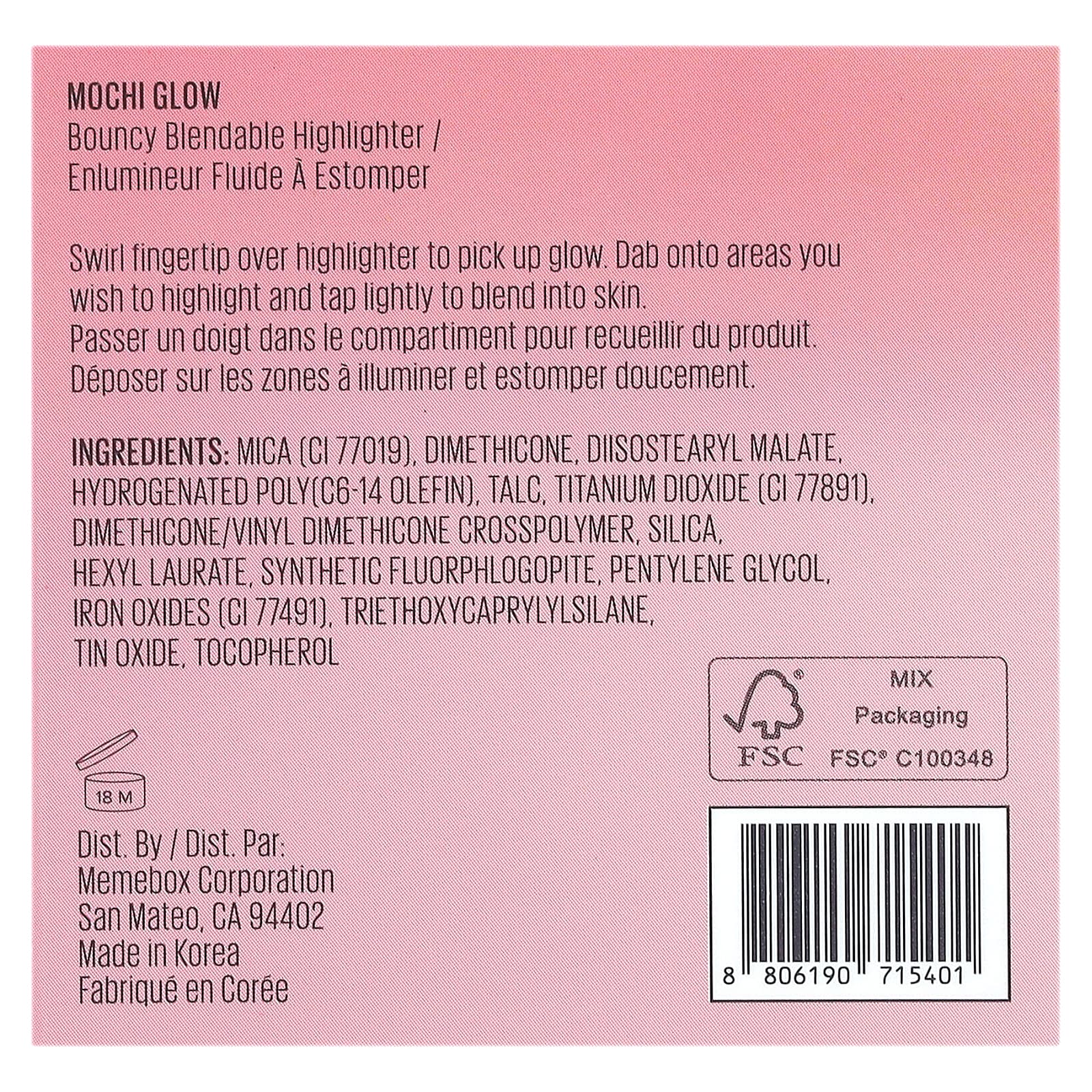 слюда (CI 77019), диметикон, диизостеарил малат, гидрогенизированный поли (C6-14 олефин), тальк, диоксид титана (CI 77891), диметикон/винил диметикон кроссполимер, диоксид кремния, гексил лаурат, синтетический фторфлогопит, пентилен гликоль, оксиды железа (CI 77491), триэтоксикаприлилсилан, оксид олова, токоферол.