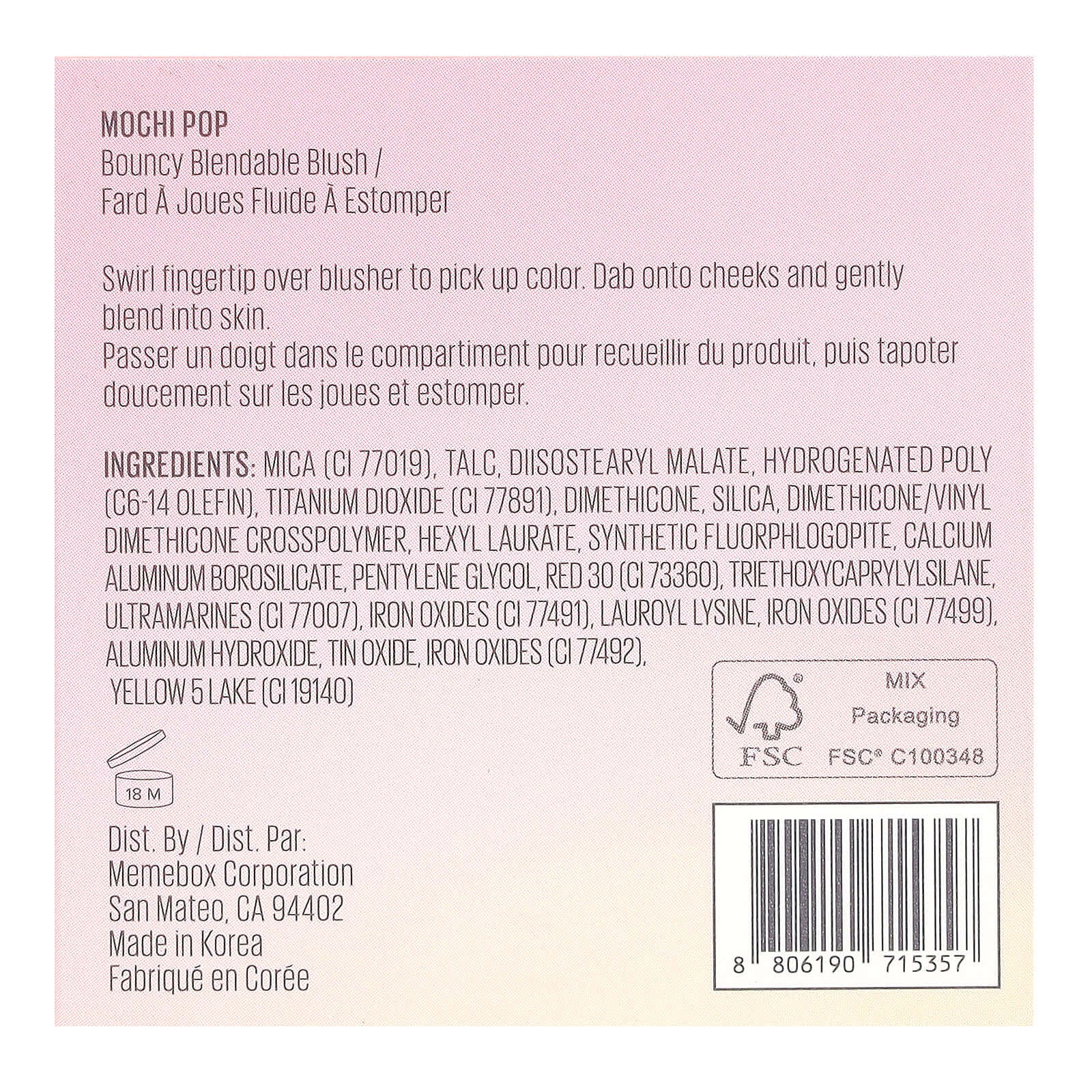 слюду (CI 77019), тальк, диизостеарил малат, гидрогенизированный поли (c6-14 олефин), диоксид титана (CI 77891), диметикон, диоксид кремния, диметикон/винил диметикон кроссполимер, гексил лаурат, синтетический фторфлогопит, кальций алюминий боросиликат, пентилен гликоль, краситель красный 30 (CI 73360), триэтоксикаприлилсилан, ультрамарины (CI 77007), оксиды железа (CI 77491), лаурил лизин, оксиды железа (CI 77499), гидроксид алюминия, оксид олова, оксиды железа (CI 77492), краситель желтый 5 лак (CI 19140)