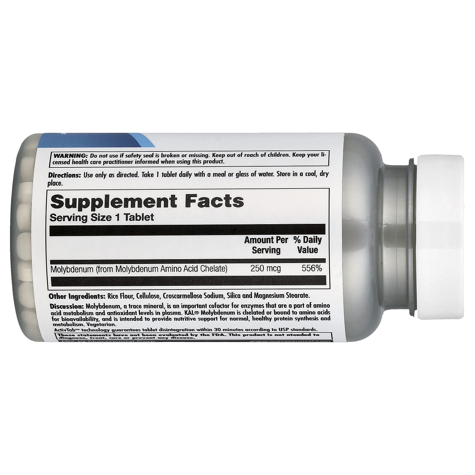Описание. Молибден, микроэлемент, является важным кофактором ферментов, которые участвуют в метаболизме аминокислот, а также обеспечивает уровень антиоксидантов в плазме. Молибден KAL® находится в хелатной форме или связан с аминокислотами в зависимости от биодоступности и предназначен для обеспечения питательной поддержки нормального синтеза и метаболизма белка.