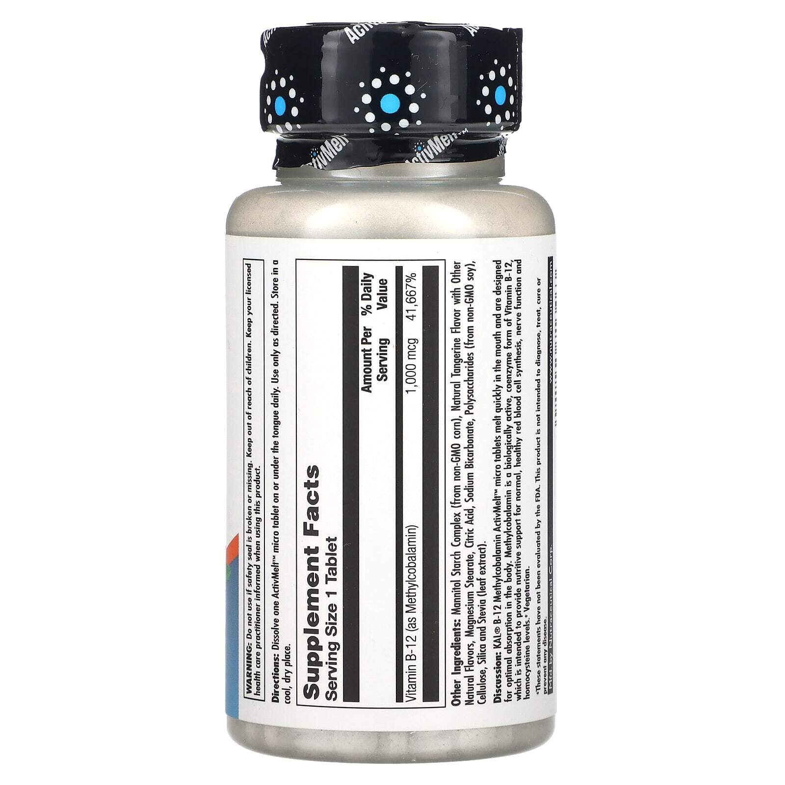 KAL® B-12 Methylcobalamin ActivMelt™ micro tablets melt quickly in the mouth and are designed for optimal absorption in the body. Methylcobalamin is a biologically active, coenzyme form of Vitamin B-12, which is intended to provide nutritive support for normal, healthy red blood cell synthesis, nerve function and homocysteine levels.
