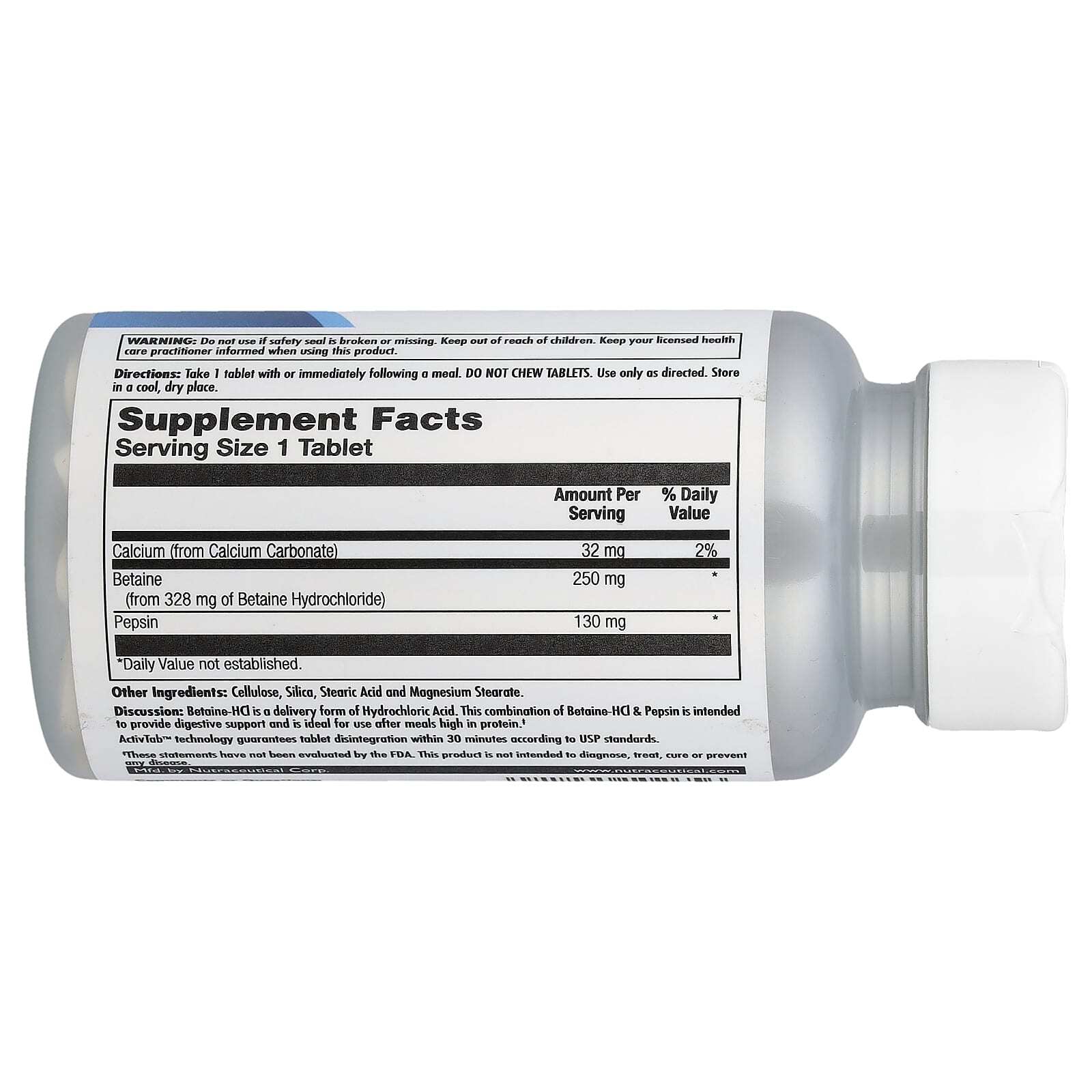 Описание. Гидрохлорид бетаина — это форма доставки соляной кислоты. Сочетание гидрохлорида бетаина и пепсина обеспечивает нормальное пищеварение. Идеально для приёма после употребления продуктов с высоким содержанием белка.
