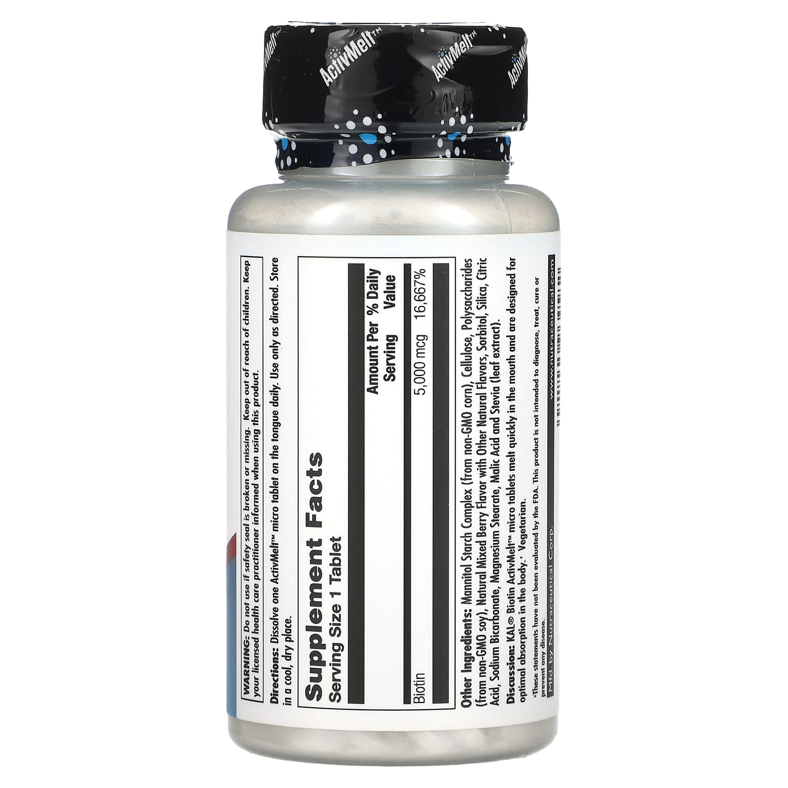 Микротаблетки с биотином ActivMelt™ от KAL® быстро тают во рту и хорошо усваиваются в организме‡.