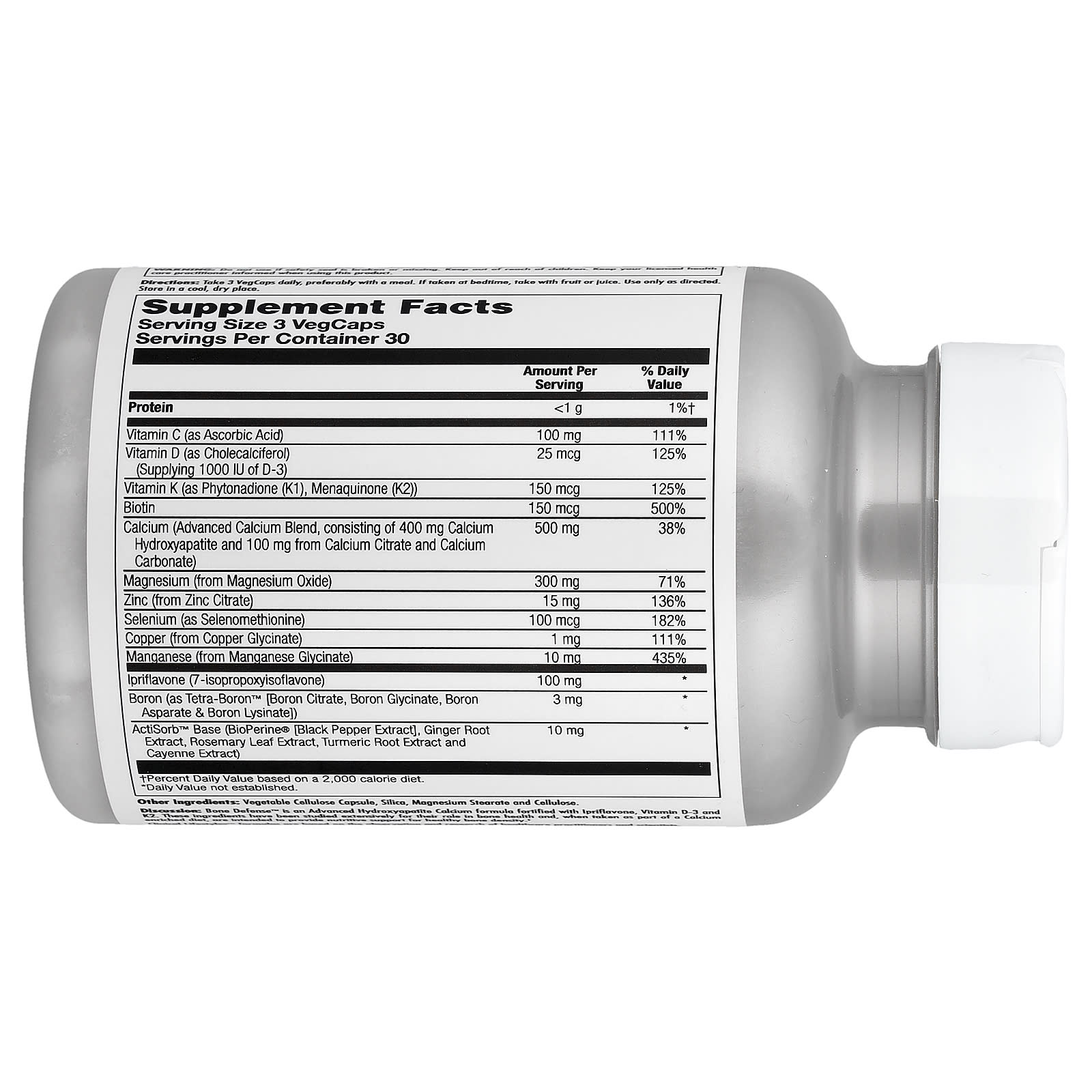 Описание. Bone Defense™ — это улучшенная формула с гидроксиапатитом кальция, обогащенная иприфлавоном, витаминами D3 и K2. Эти ингредиенты были тщательно изучены на предмет их роли в здоровье костей. При приеме в составе диеты, обогащенной кальцием, они обеспечивают питательную поддержку для здоровой плотности костей.