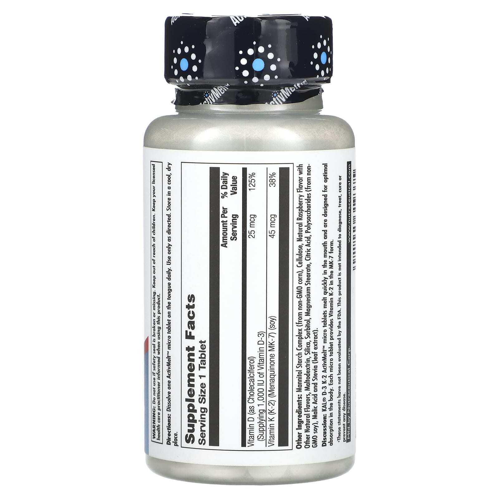 Микротаблетки D-3 и K-2 ActivMelt™ от KAL® быстро тают во рту и хорошо усваиваются в организме. Каждая микротаблетка содержит витамин K2 в форме MK-7.
