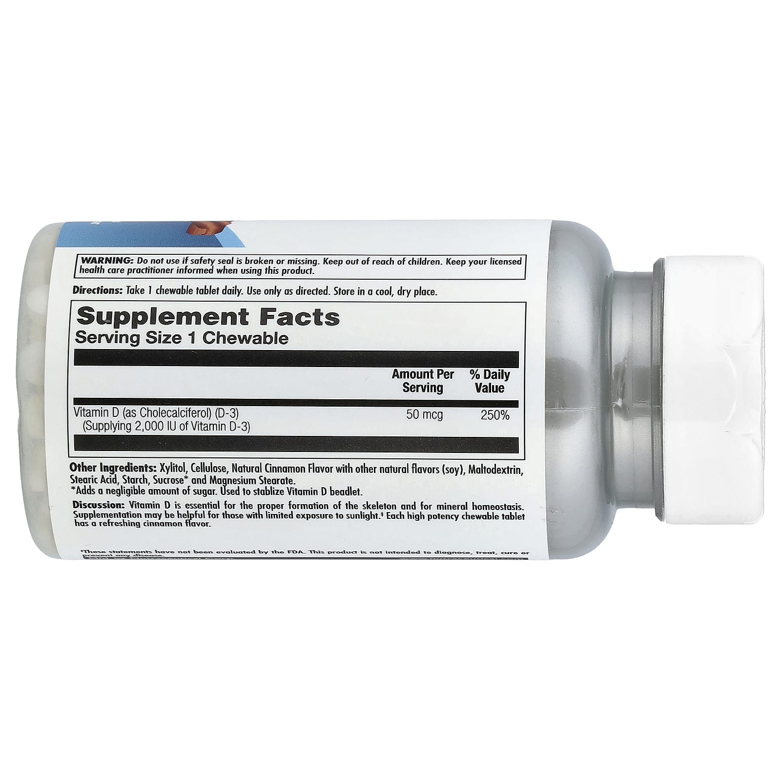 Витамин D необходим для правильного формирования скелета и минерального гомеостаза. Добавка может быть полезна тем, кто ограничен в солнечном свете. Каждая жевательная таблетка высокой эффективности имеет освежающий вкус корицы.