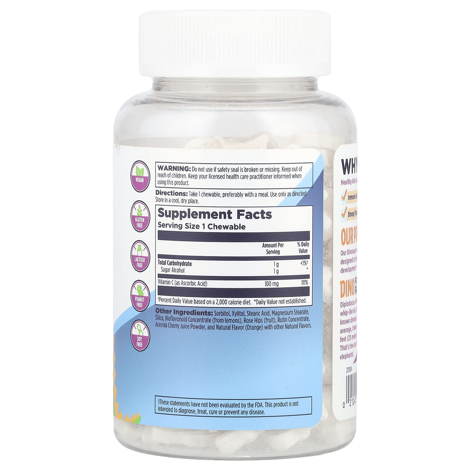 Сорбитол, ксилитол, стеариновая кислота, стеарат магния, диоксид кремния, концентрат биофлавоноидов (из лимона), плоды шиповника, концентрат рутина, порошок из сока ацеролы, органический натуральный ароматизатор (апельсин) и другие натуральные ароматизаторы.