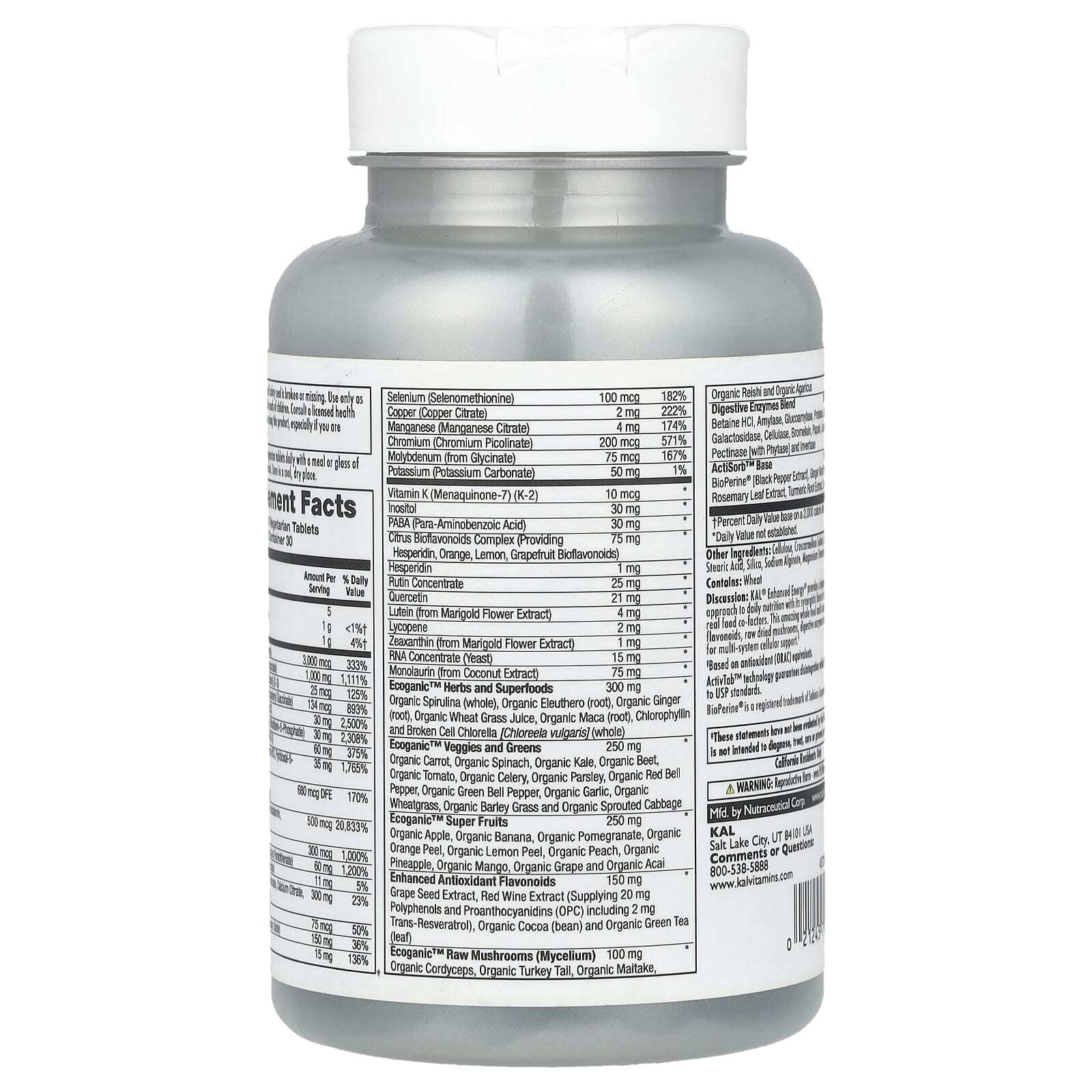 Описание. KAL® Enhanced Energy® обеспечивает сбалансированный подход к ежедневному питанию всего организма благодаря синергетической смеси витаминов, минералов и кофакторов из натуральных пищевых продуктов. Этот удивительный комплекс из цельных продуктов содержит эквивалент 3 порций органических фруктов и овощей, а также бодрящие зеленые продукты, антиоксидантные флавоноиды, сырые сушеные грибы, пищеварительные ферменты и натуральные каротиноиды для поддержки нескольких систем клеток.
