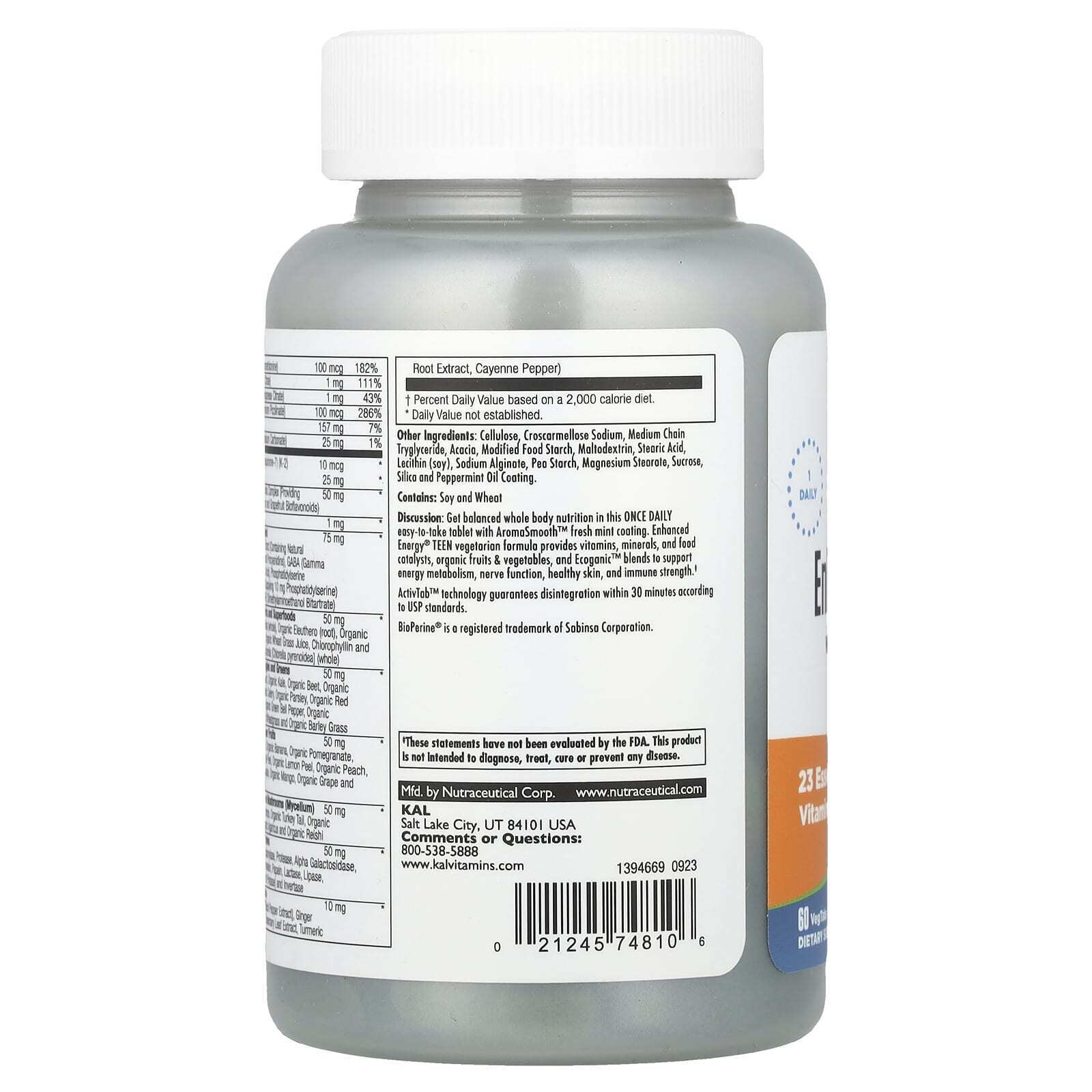 Описание. Получите сбалансированное питание для всего организма с этой удобной таблеткой, принимаемой один раз в день, с покрытием AromaSmooth™ и вкусом свежей мяты. Enhanced Energy® Teen — вегетарианская формула, которая обеспечивает витамины, минералы и пищевые катализаторы, органические фрукты и овощи, а также смеси Ecoganic™ для поддержания метаболизма энергии, работы нервной системы, здоровья кожи и укрепления иммунитета.
