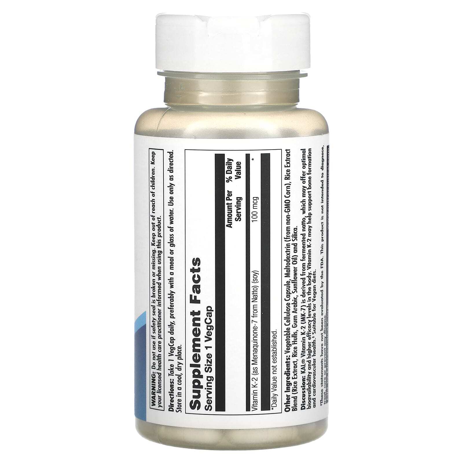 Описание. Витамин K-2 (MK-7) KAL® получают из ферментированного натто, который может обеспечивать оптимальную биодоступность и более высокий уровень эффективности в организме. Витамин К2 может способствовать формированию костей и здоровью сердечно-сосудистой системы.