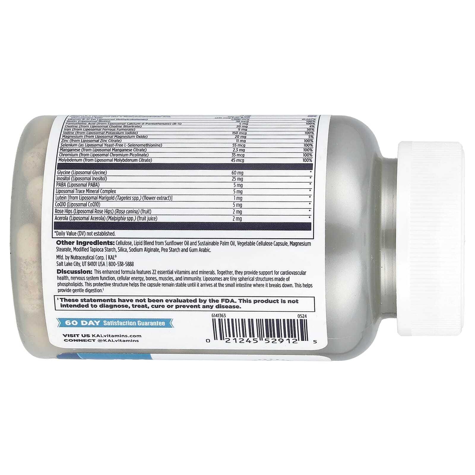 Описание. Эта улучшенная формула содержит 22 незаменимых витамина и минерала. Вместе они обеспечивают поддержку здоровья сердечно-сосудистой системы, работы нервной системы, клеточной энергии, костей, мышц и иммунитета. Липосомы - это крошечные сферические структуры, состоящие из фосфолипидов. Эта защитная структура помогает капсуле оставаться стабильной до тех пор, пока она не попадет в тонкий кишечник, где она разрушится. Это помогает обеспечить мягкое пищеварение.
