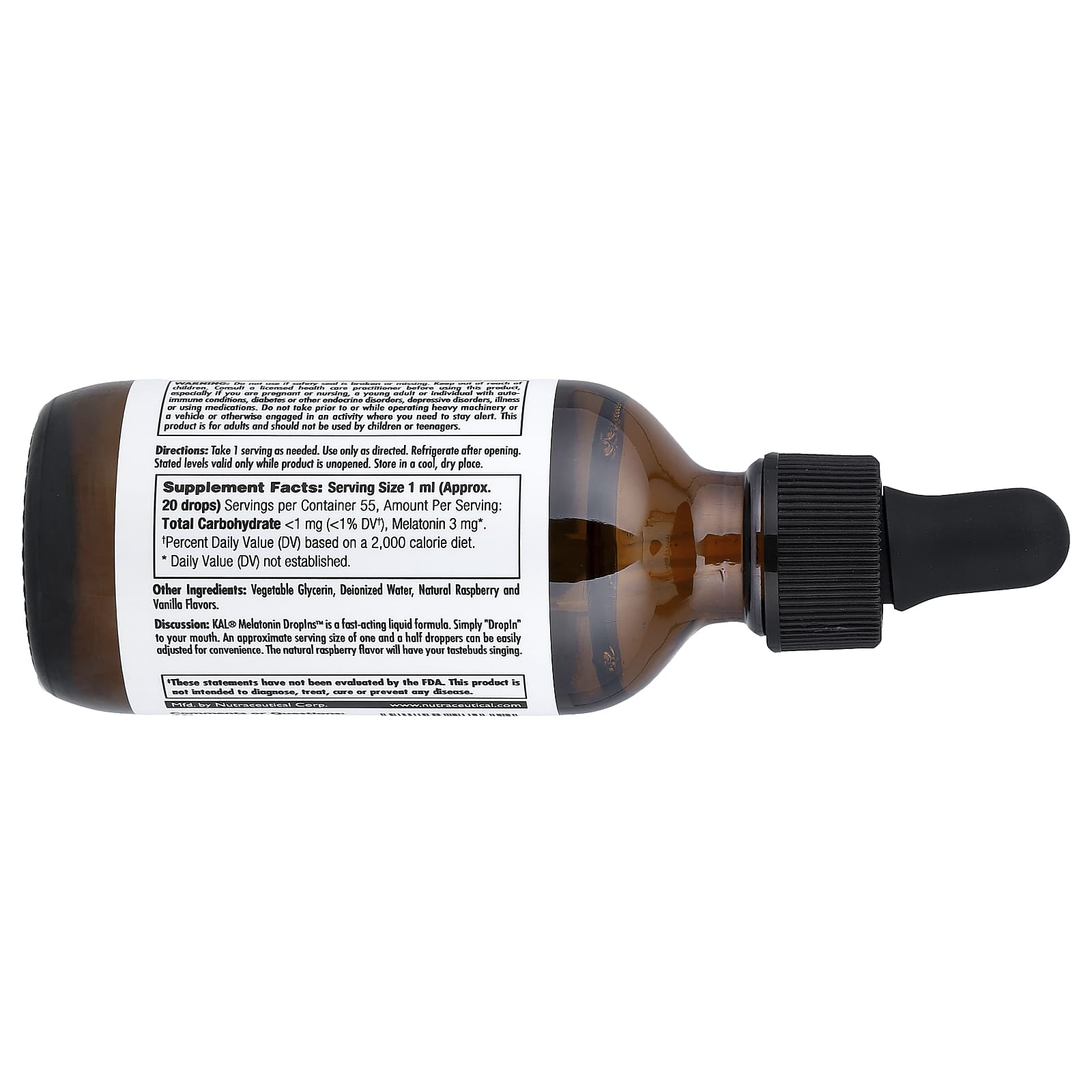 Описание. Мелатонин KAL® Melatonin DropIns™ — это быстродействующее жидкое средство. Просто принимайте DropIns в виде капель перорально. Приблизительный размер порции (полторы пипетки) можно легко отрегулировать для удобства. Натуральный вкус малины точно придётся вам по душе.