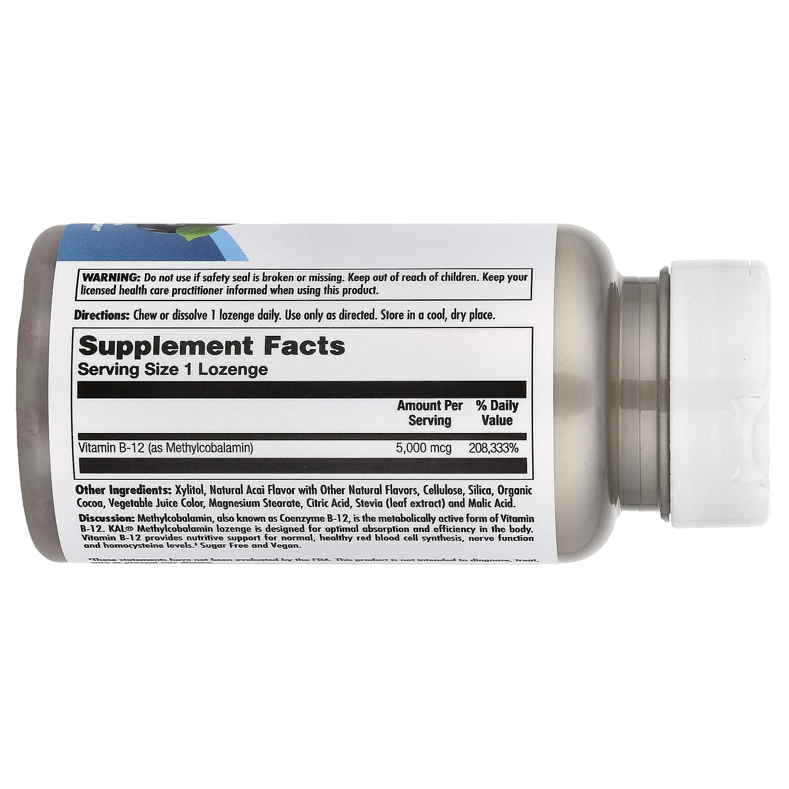 KAL, Метилкобаламин витамина B12, ягоды асаи, 5000 мкг, 60 пастилок