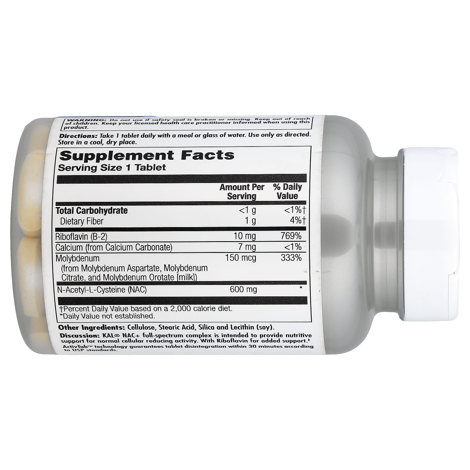 Описание. Комплекс полного спектра KAL® NAC+ предназначен для обеспечения питательной поддержки нормальной клеточной восстановительной активности. Содержит рибофлавин для дополнительной поддержки. Технология ActivTab™ гарантирует распад таблетки в течение 30 минут согласно стандартам USP.