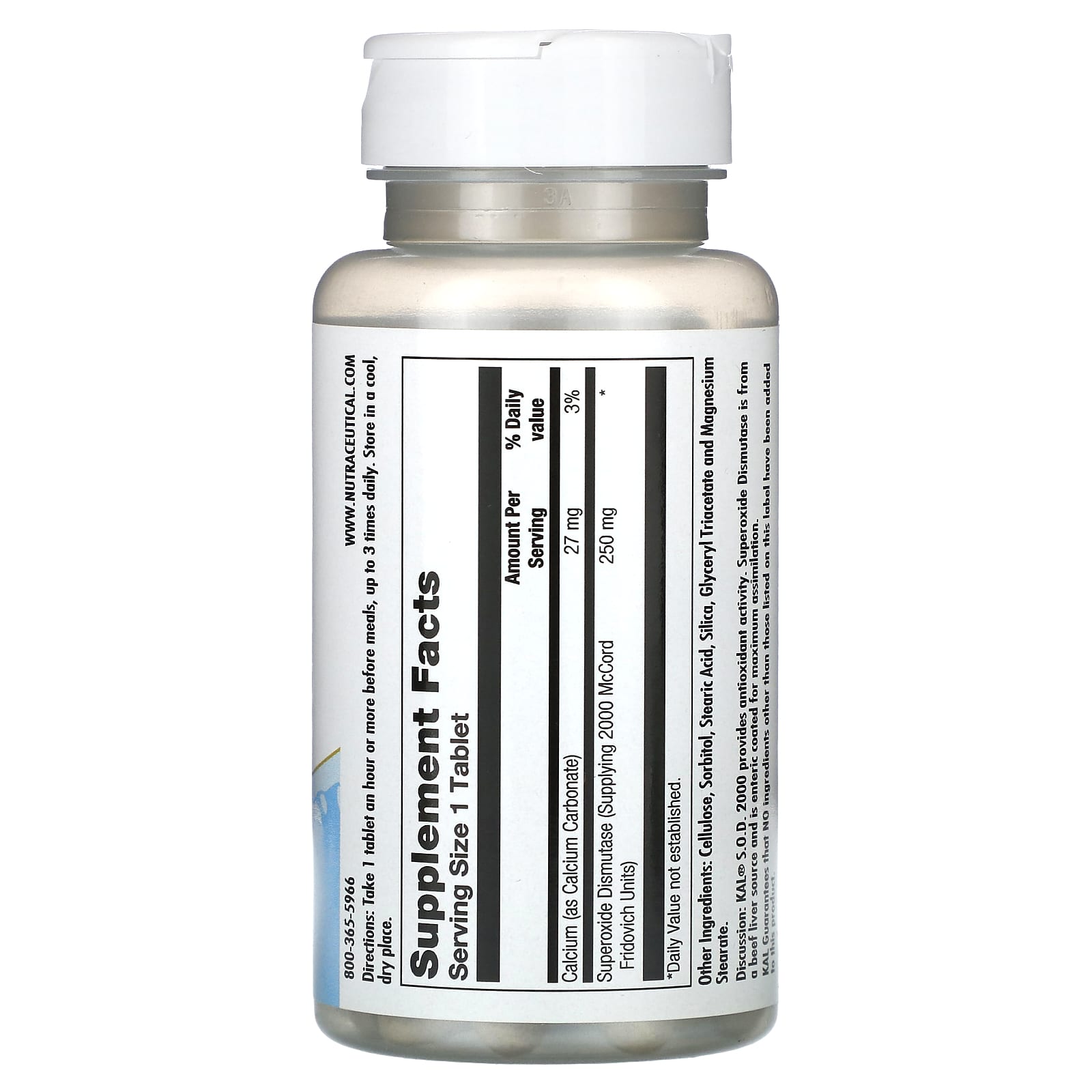 KAL® SOD 2000 обеспечивает антиоксидантную активность. Супероксиддисмутаза получают из говяжьей печени и имеют кишечнорастворимую оболочку для максимального усвоения.