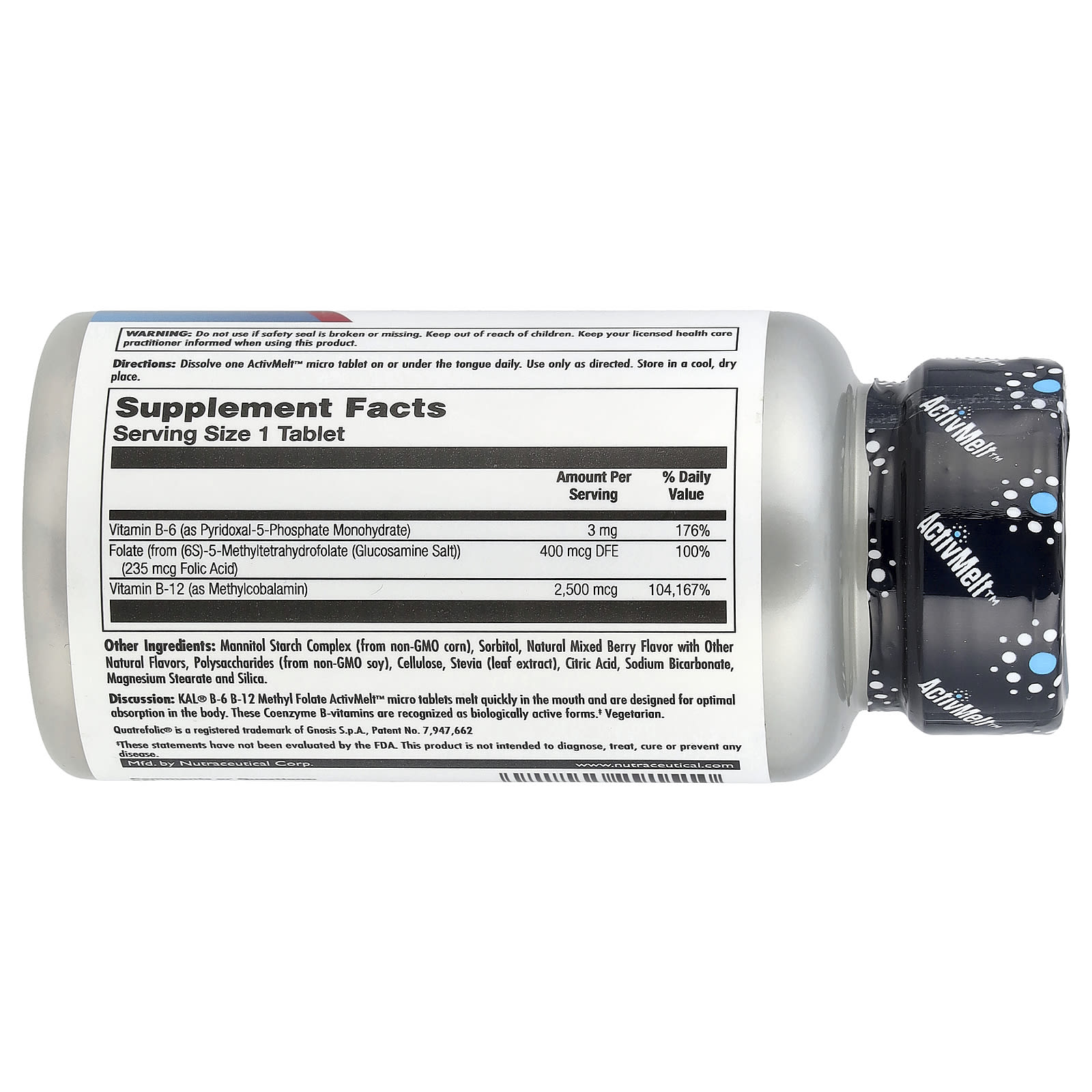 Описание. Микротаблетки с метилфолатом, витаминами B-6 и B-12 ActivMelt™ от KAL® быстро тают во рту и оптимально усваиваются в организме. Эти коэнзимные формы витаминов группы B являются биологически активными формами.