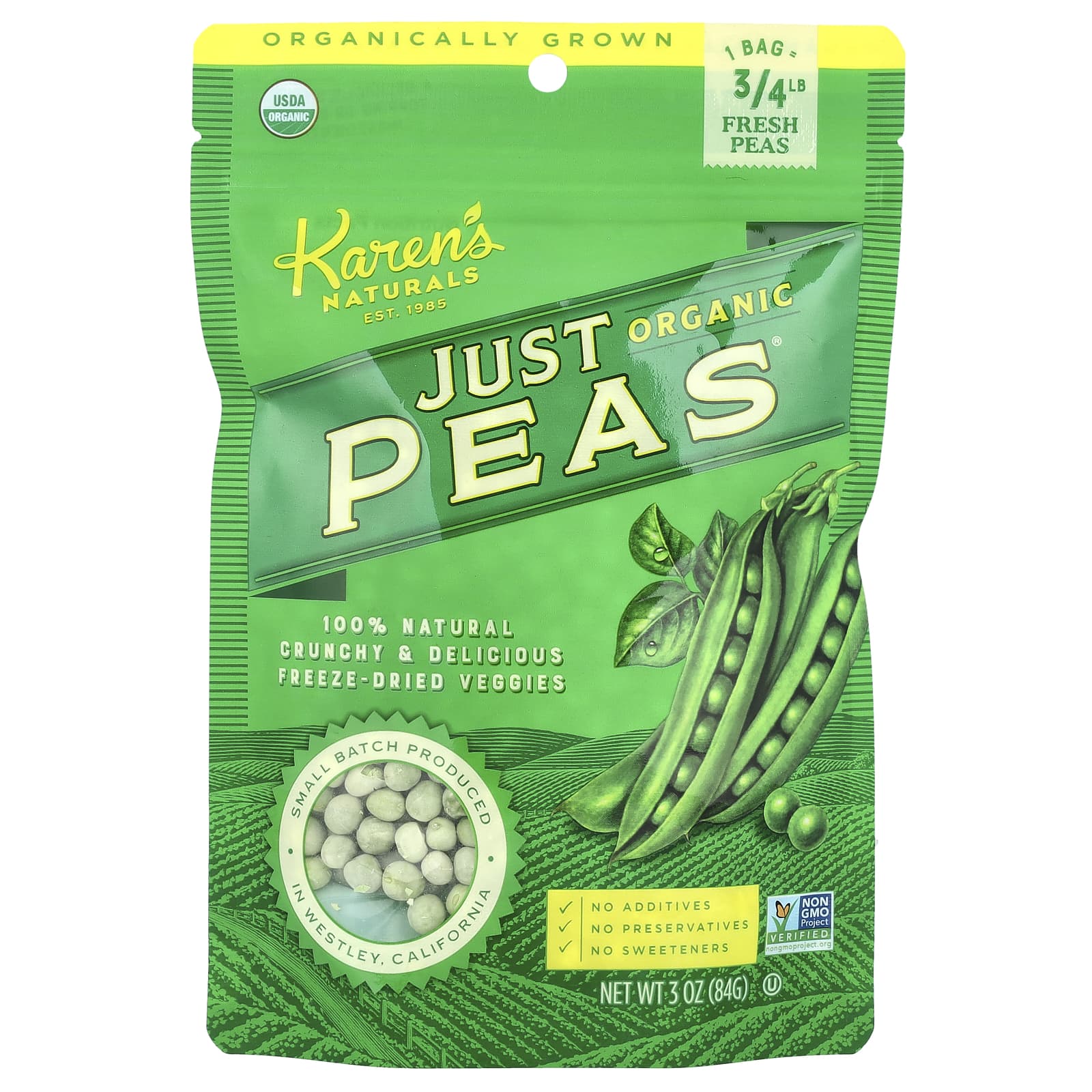 Нет ничего вкуснее сладкого органического садового горошка, собранного прямо со стручка. Органический горошек, собранный свежим и высушенный при низких температурах для сохранения вкуса и необходимых питательных веществ, является восхитительно хрустящей закуской. Посыпайте салаты и печеный картофель или добавляйте в супы, пасту и рис для яркого горохового вкуса.