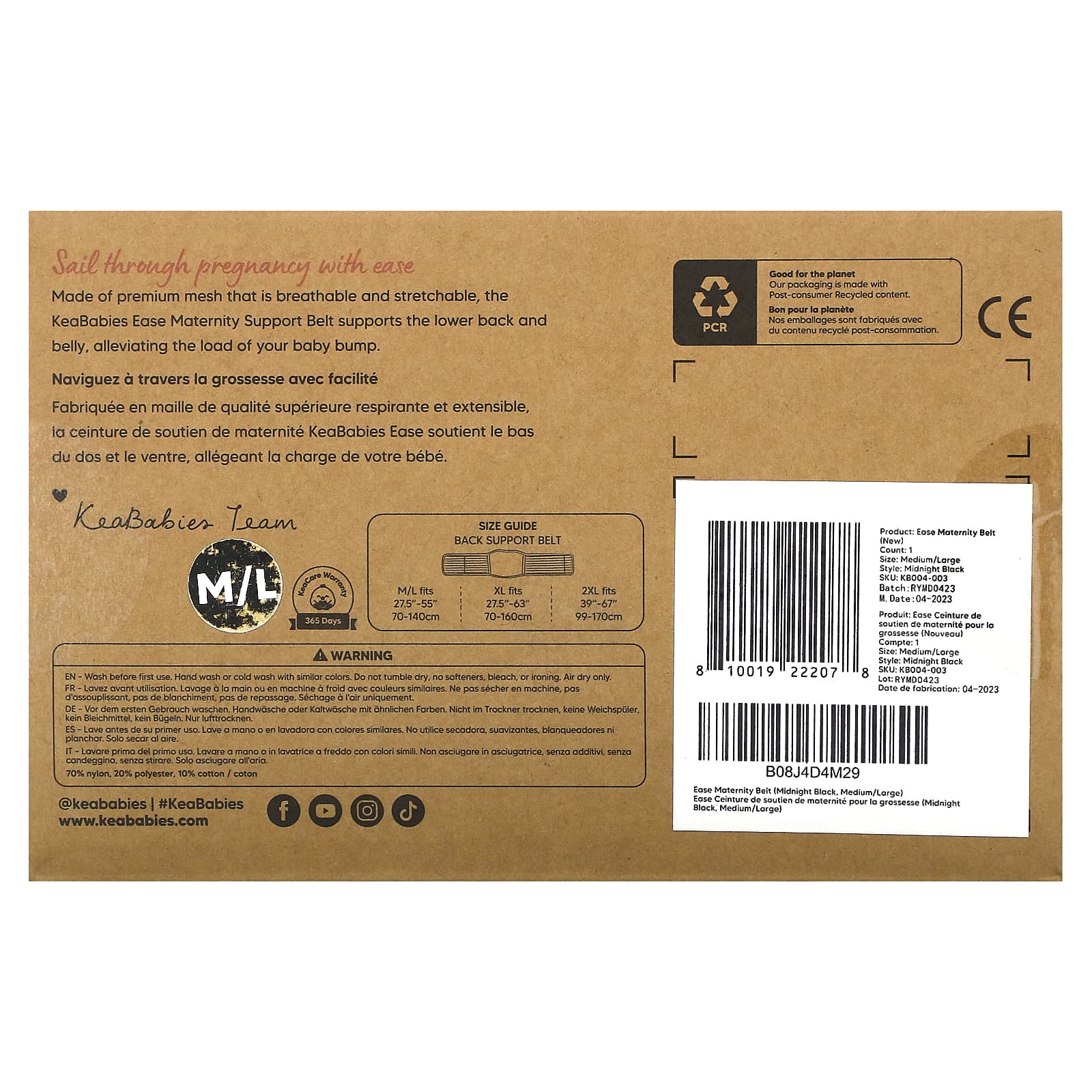 Пояс для поддержки беременных KeaBabies Ease, изготовленный из дышащей и эластичной сетки премиального качества, поддерживает поясницу и живот, облегчая работу ягодицы.