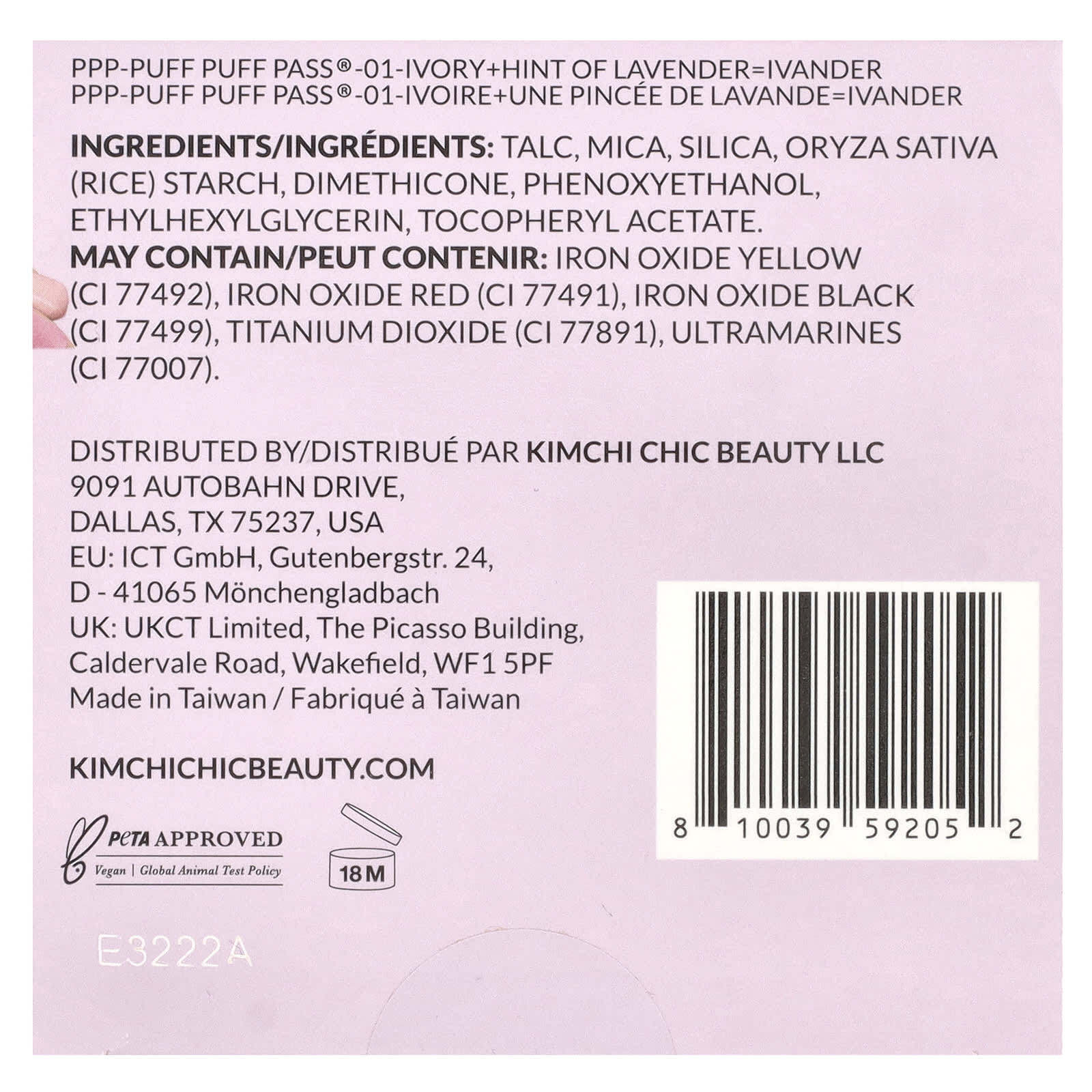 KimChi Chic Beauty, Puff Puff Pass®, порошок для запекания, PPP01 слоновая кость + лаванда = ивандер, 24 г (0,85 унции)
