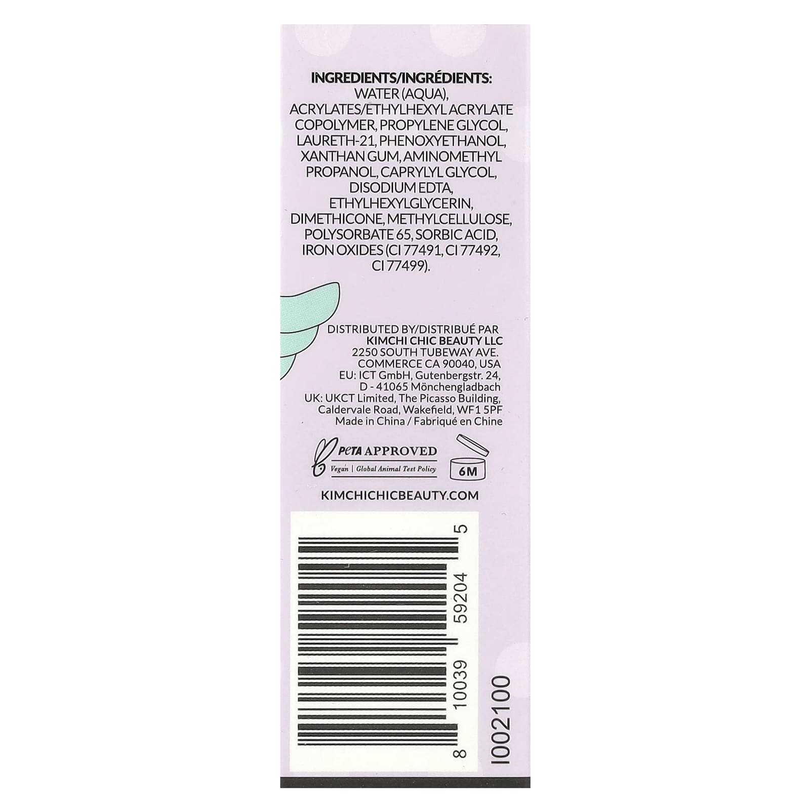 Вода, сополимер акрилатов / этилгексилакрилата, пропиленгликоль, лаурет-21, феноксиэтанол, ксантановая камедь, аминометил пропанол, каприлилгликоль, двунатриевая ЭДТК, этилгексилглицерин, диметикон, метилцеллюлоза, полисорбат 65, сорбиновая кислота, оксиды железа (CI 77491, CI 77492, CI 77499).