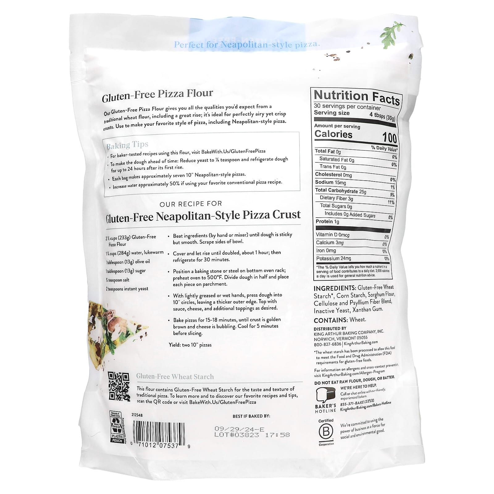 Безглютеновый пшеничный крахмал: эта мука содержит безглютеновый пшеничный крахмал для вкуса и текстуры традиционной пиццы.