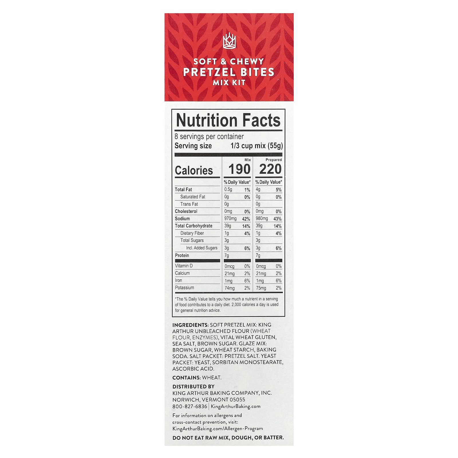 Мягкая смесь для кренделя: Небеленая мука короля Артура (пшеничная мука, ферменты), живой пшеничный глютен, морская соль, коричневый сахар. Смесь глазури: коричневый сахар, пшеничный крахмал, пищевая сода. Пакетик соли: соль для кренделя. Пакетик дрожжей: дрожжи, сорбитан моностеарат, аскорбиновая кислота.
