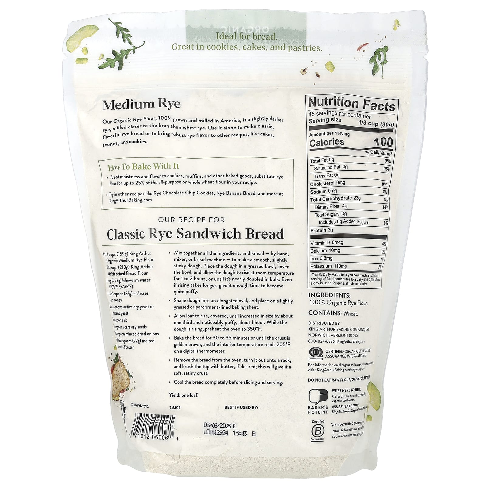 Наша органическая ржаная мука, на 100% выращенная и измельченная в Америке, представляет собой немного более темную рожь, помол которой ближе к отрубям, чем белая рожь. Используйте его отдельно для приготовления классического ароматного ржаного хлеба или для придания насыщенного ржаного вкуса другим рецептам, таким как пирожные, булочки и печенье.