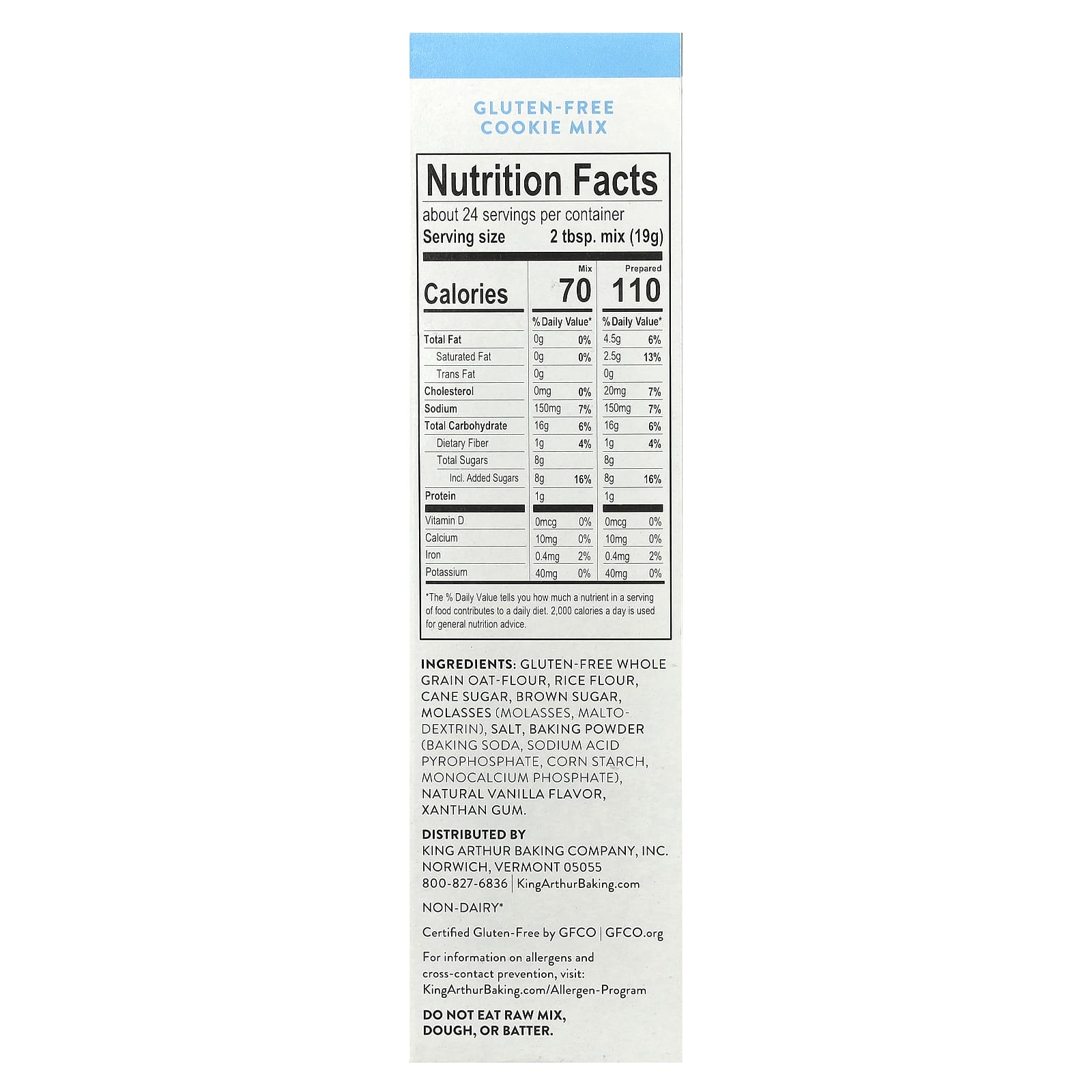 Цельнозерновая овсяная мука без глютена, рисовая мука, тростниковый сахар, коричневый сахар, патока, мальтодекстрин), соль, разрыхлитель (пищевая сода, кислый пирофосфат натрия, кукурузный крахмал, монокальцийфосфат), натуральный ароматизатор «Ваниль», ксантановую камедь.