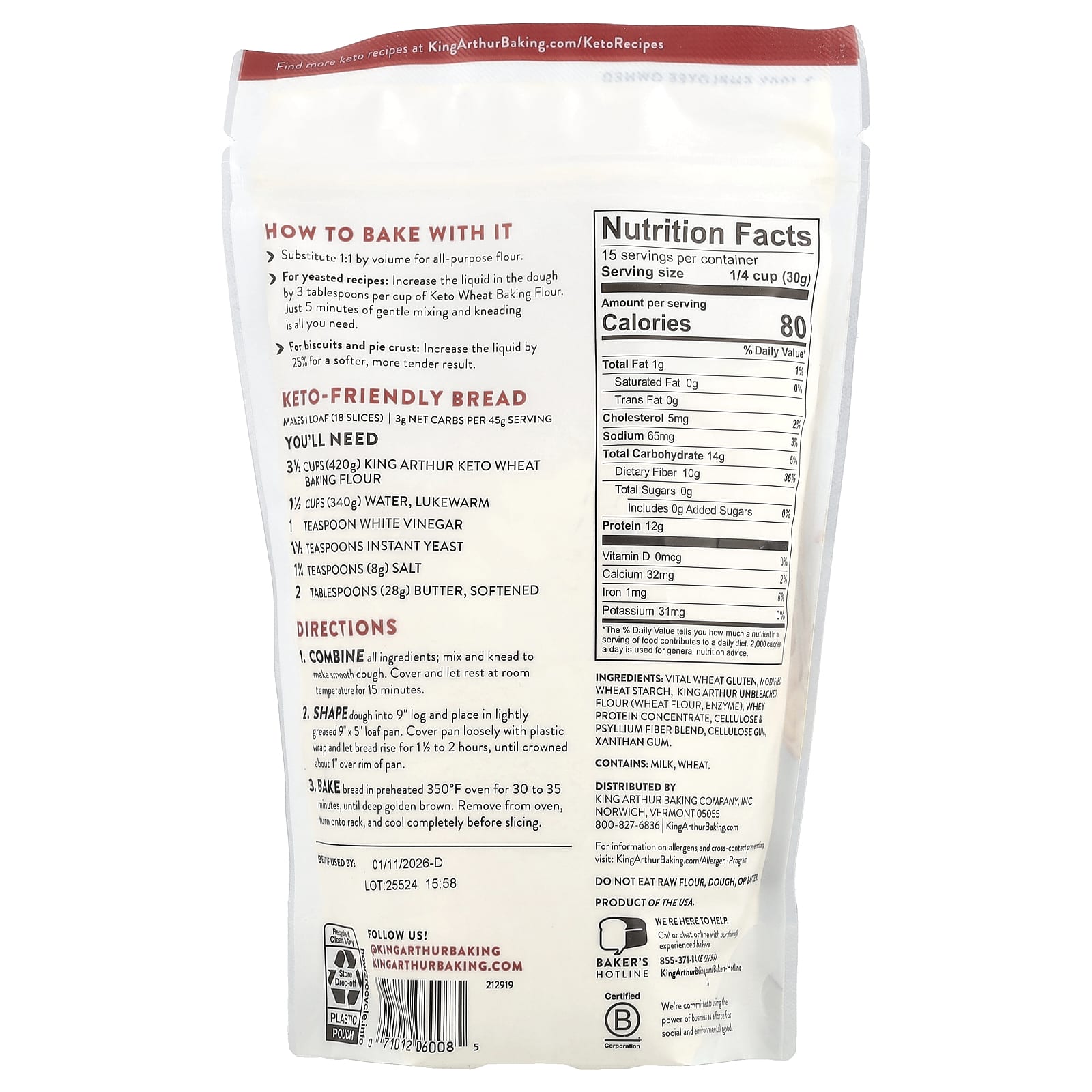 Наслаждайтесь низкоуглеводными версиями любимого хлеба и дрожжевой выпечки теперь проще, чем когда-либо! Наша пшеничная кето-мука содержит всего 4 г чистых углеводов и является незаменимым продуктом для всех, кто соблюдает кетогенную диету или снижает потребление углеводов. Это так же просто, как заменить ее в соотношении 1: 1 для любого рецепта, в котором используется универсальная мука.