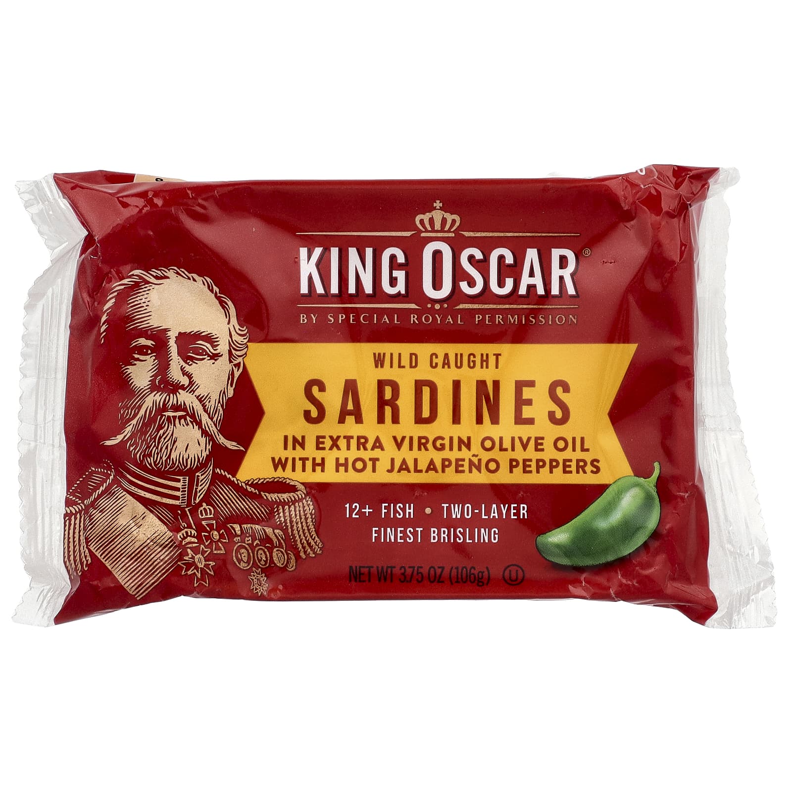 Подкопченные игристые сардины, оливковое масло холодного отжима, нарезанный перец халапеньо, соль, со вкусом перца чили.