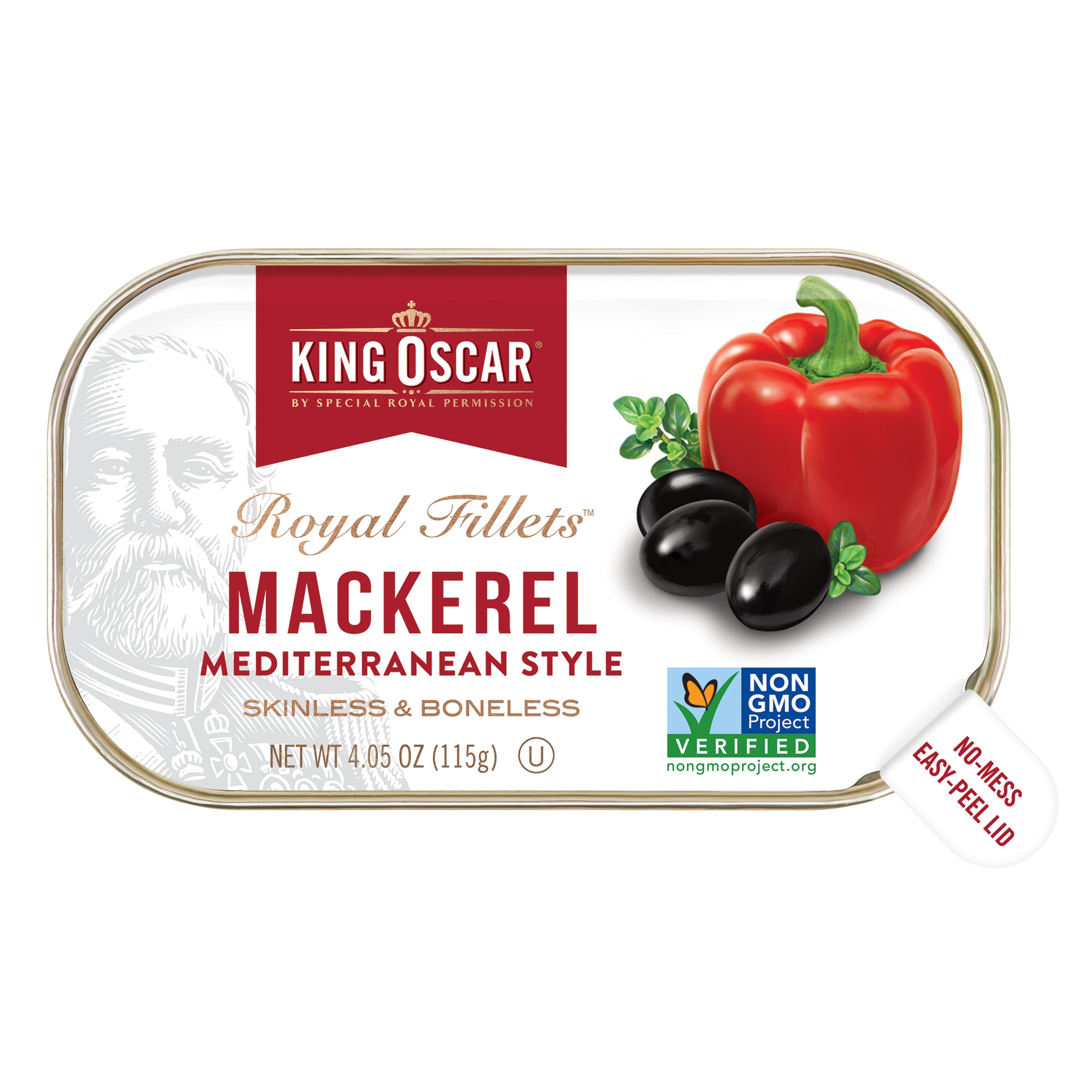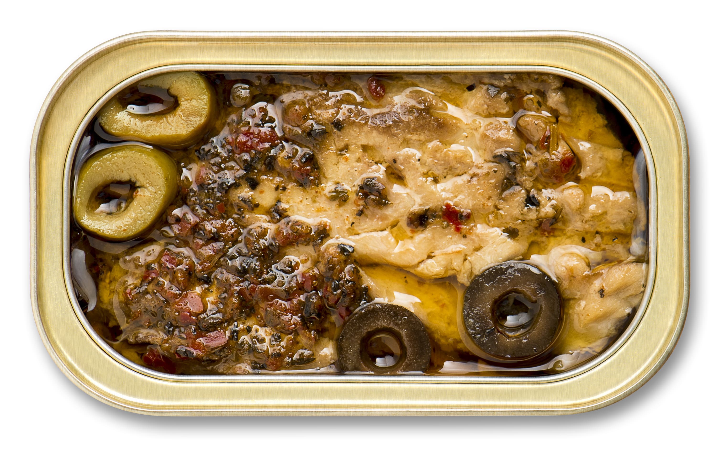 Североатлантическая скумбрия без кожи и костей, оливковое масло, нарезанные зеленые и черные оливки, оливковое масло холодного отжима, красный сладкий перец, прованские травы (специи), соль, чеснок.