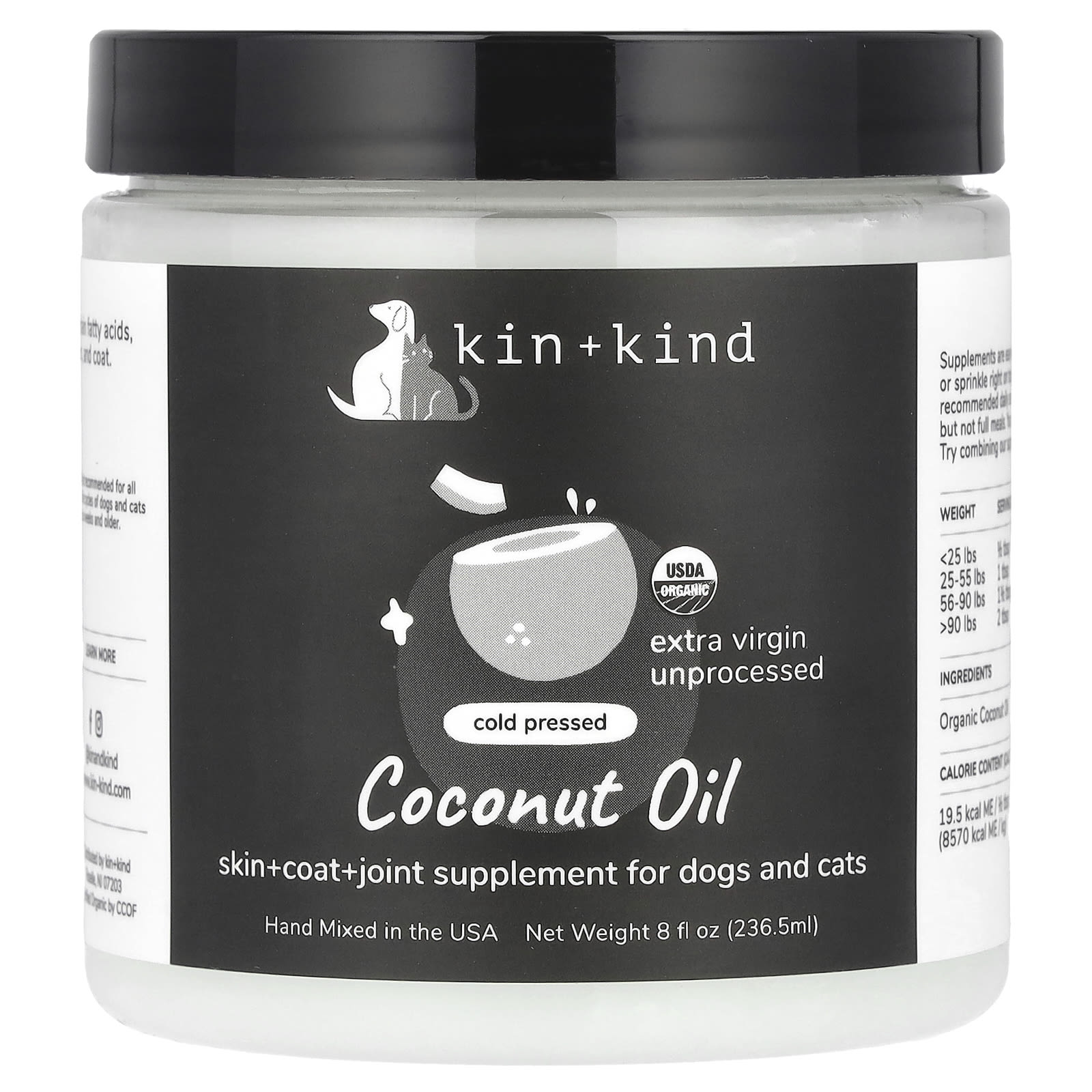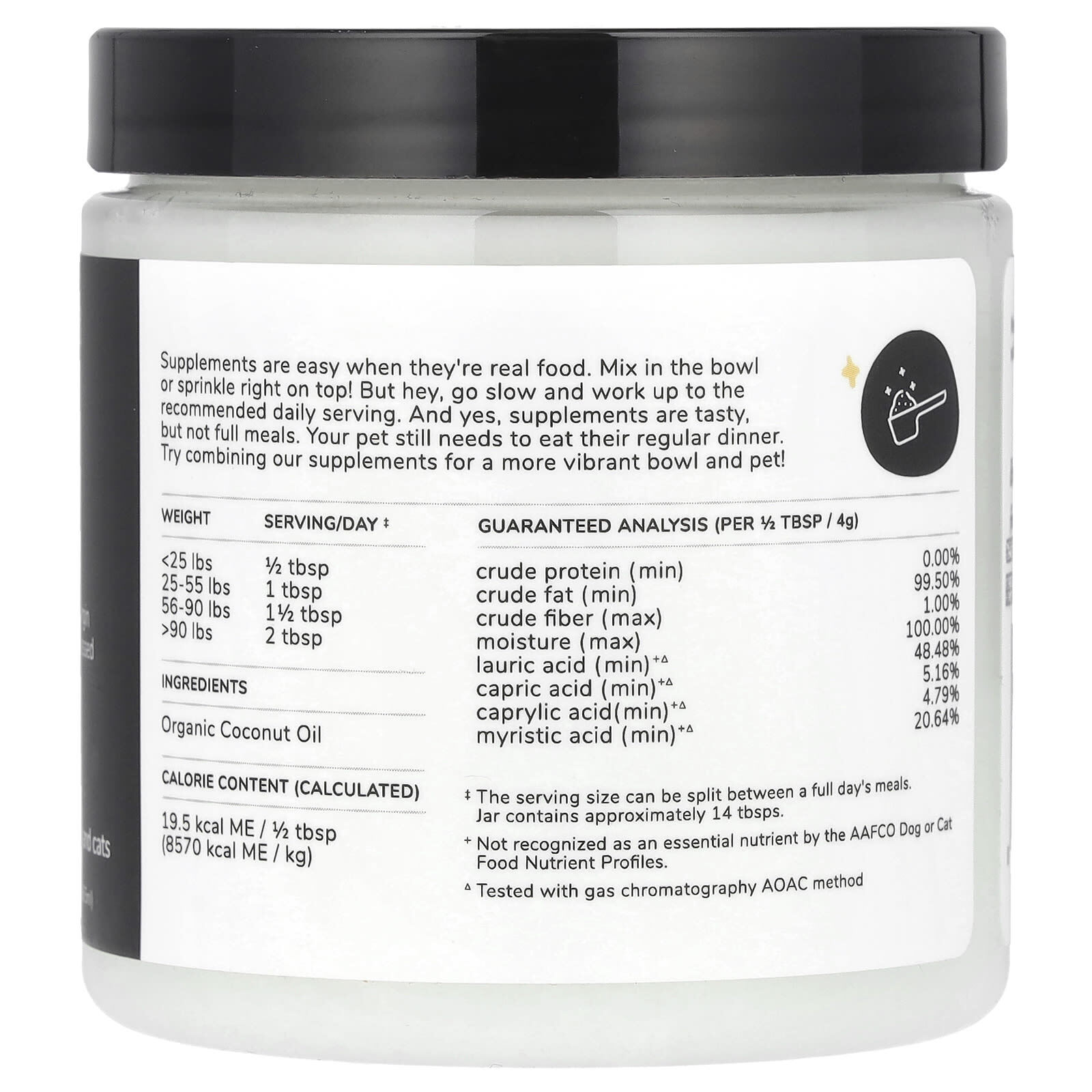 Познакомьтесь с хорошим жиром. Необработанное кокосовое масло богато среднецепочечными жирными кислотами, которые обеспечивают питательную поддержку для здоровья суставов, кожи и шерсти.
