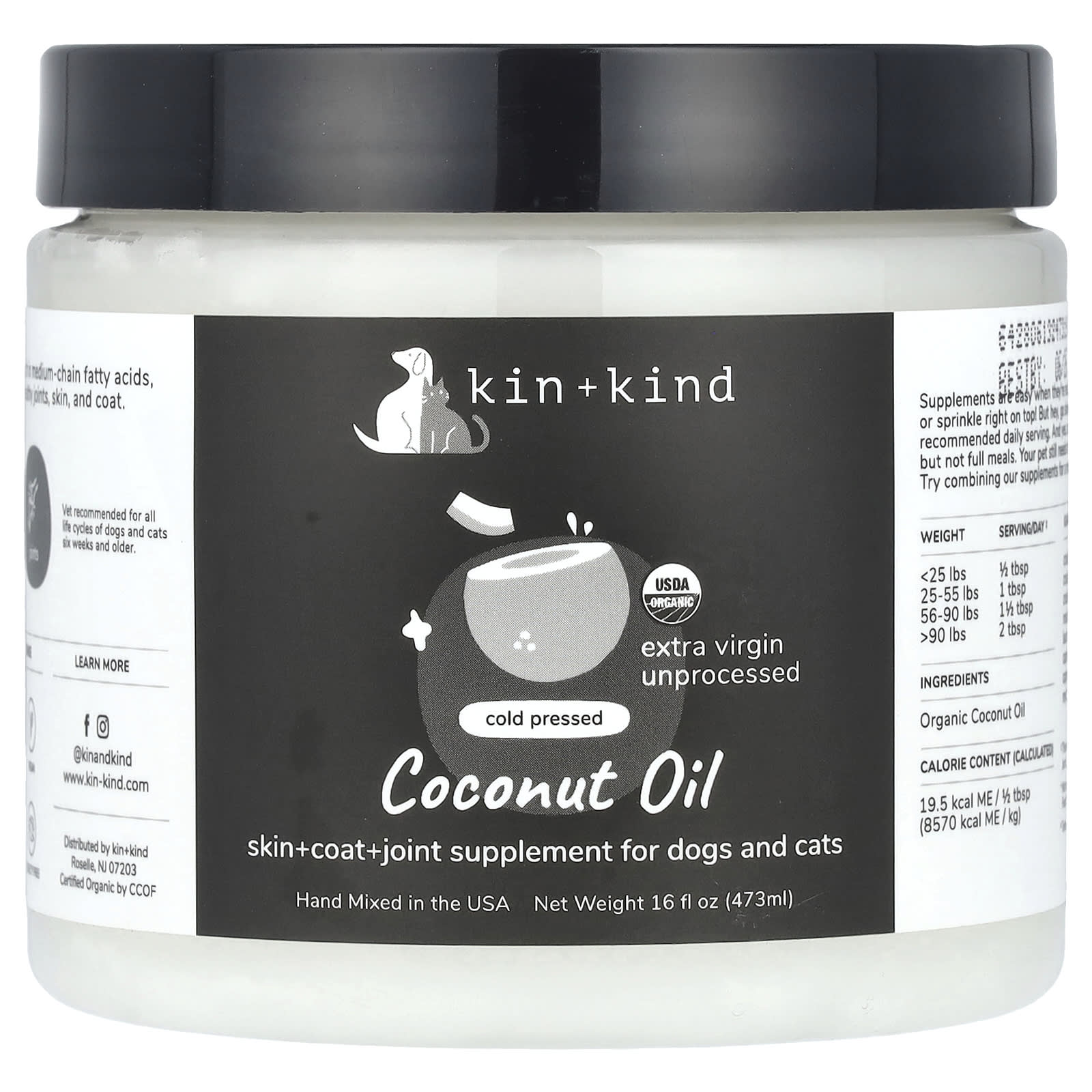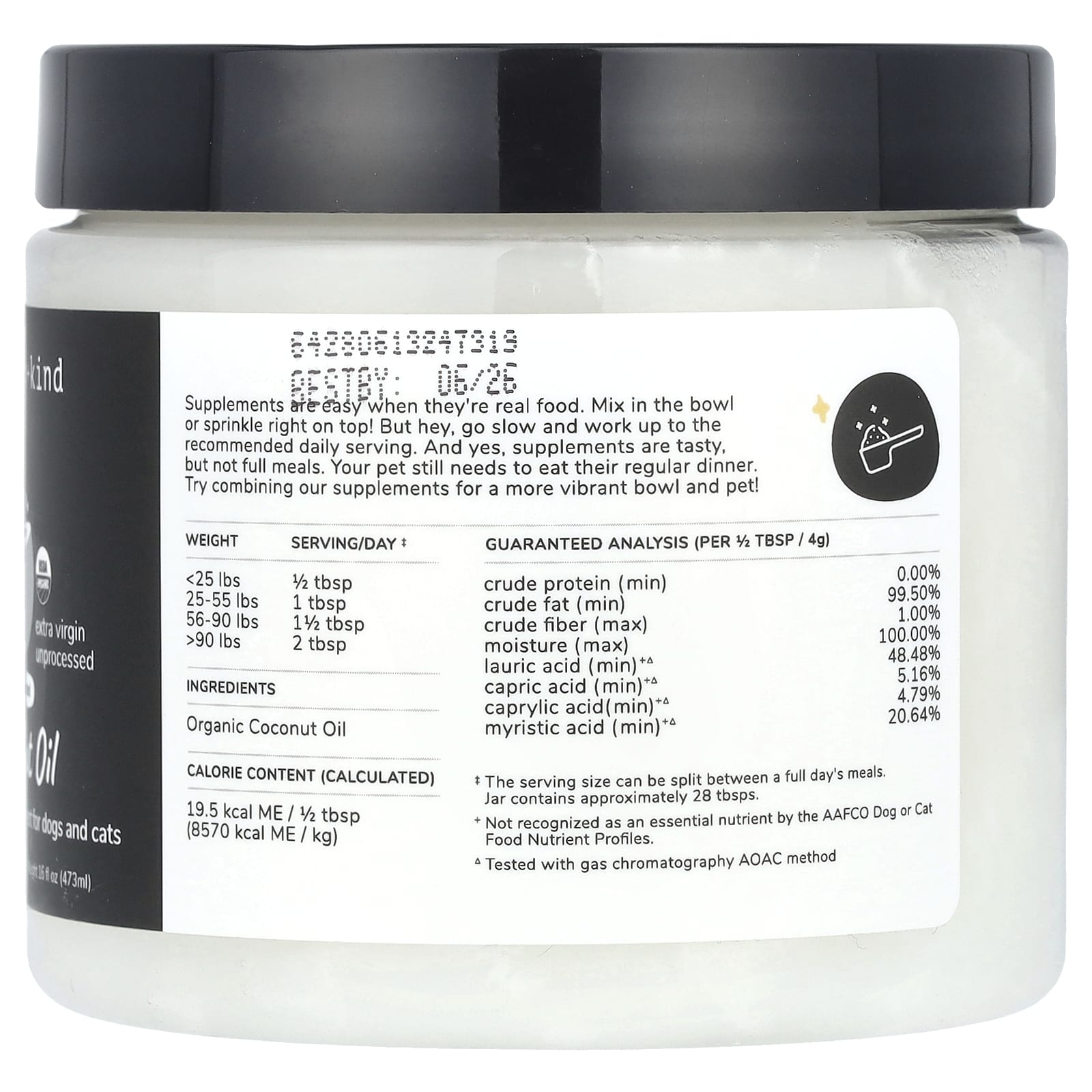 Познакомьтесь с хорошим жиром. Необработанное кокосовое масло богато среднецепочечными жирными кислотами, которые обеспечивают питательную поддержку для здоровья суставов, кожи и шерсти.