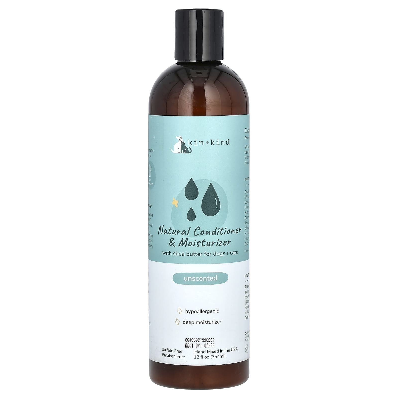 После мытья головы шампунем kin+kind нанесите кондиционер от головы до хвоста, избегая попадания в глаза. (Никому не нравится мыло в глазах.) Хорошо помассируйте, чтобы полностью покрыть кожу и шерсть. Хорошо смойте.