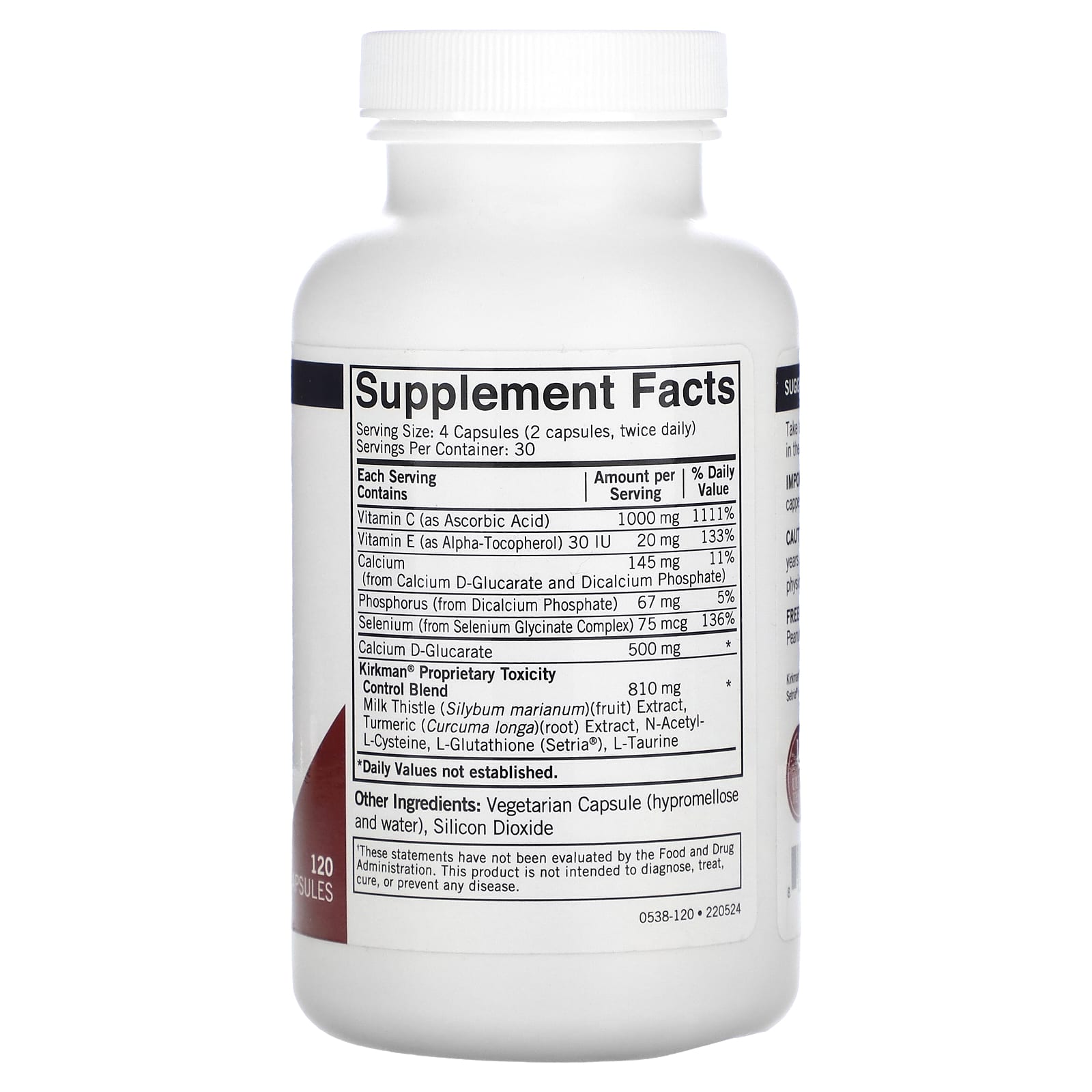 | Запатентованная смесь для контроля токсичности Kirkman® экстракт плодов расторопши пятнистой (Silybum marianum), экстракт корня куркумы (Curcuma longa), N-ацетил-L-цистеин, L-глутатион (Setria®), L-таурин | 810 мг | * |