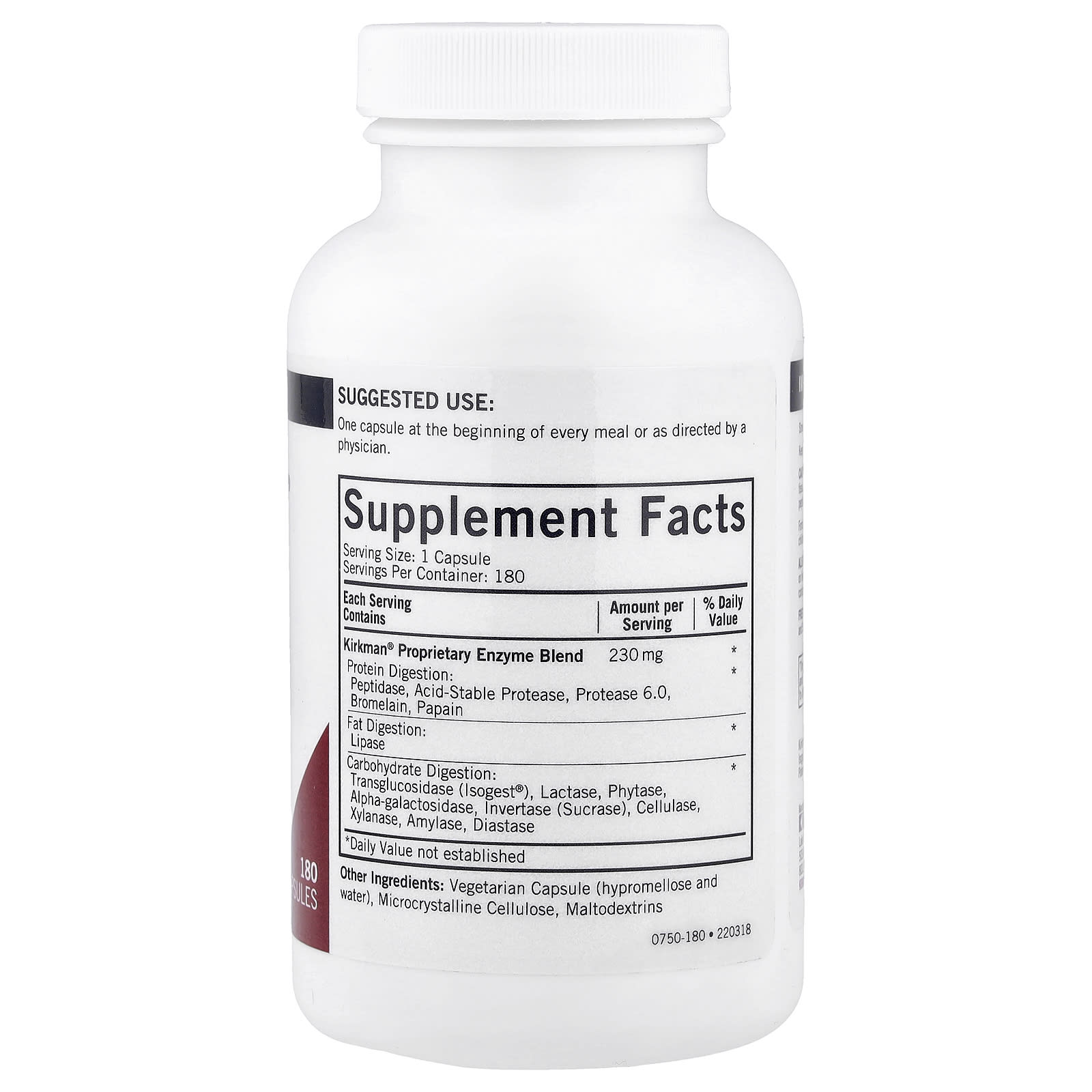 | Запатентованная смесь ферментов Kirkman® Усвоение протеина: пептидаза, кислотостойкая протеаза, протеаза 6,0, бромелаин, папаин | 230 мг | * * |