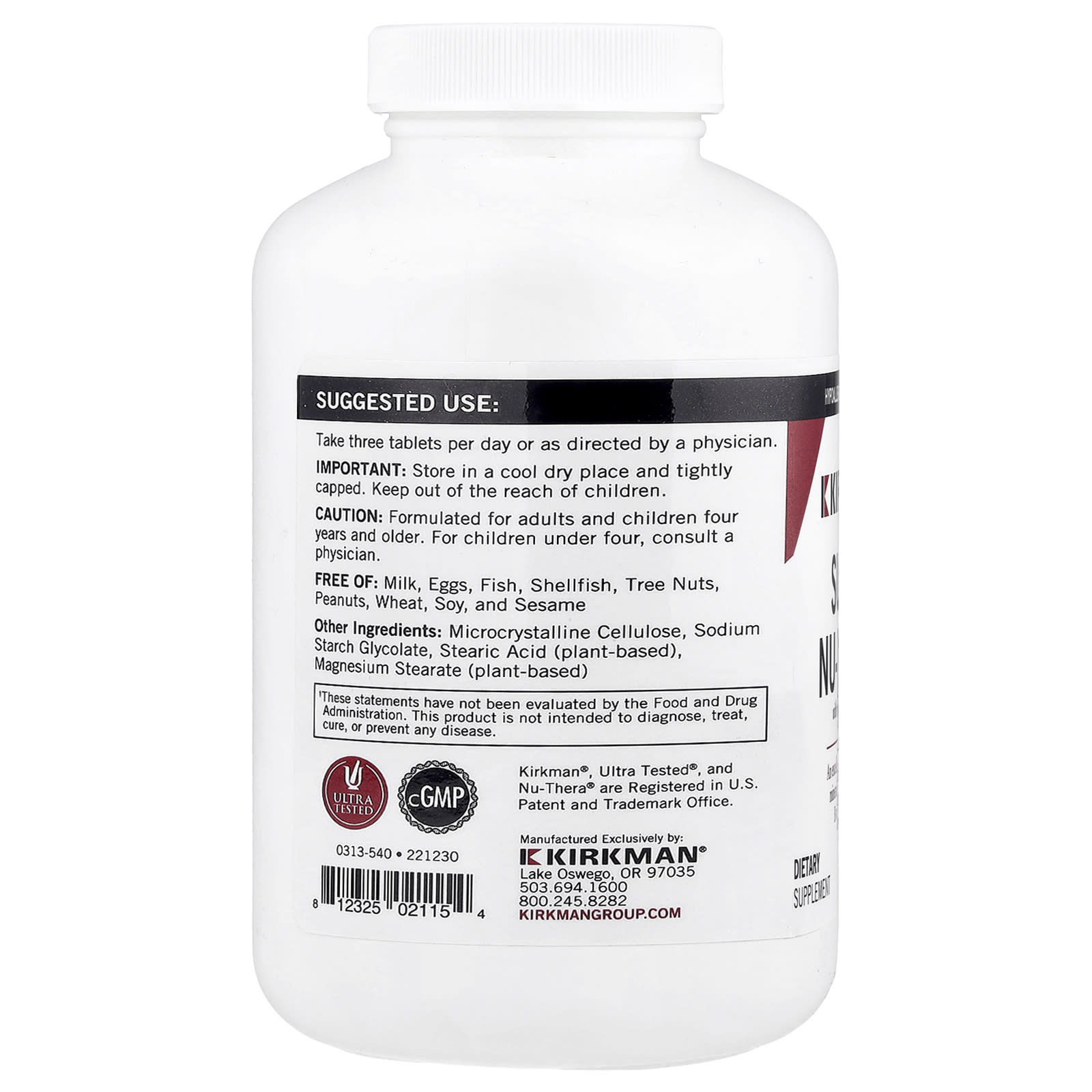 Kirkman предлагает популярную добавку Супер Ну-Тера с пиридоксаль-5-фосфатом (P-5-P) в удобных для проглатывания капсулах. Содержащие P-5-P в качестве источника витамина B6 варианты Супер Ну-Теры предназначены для людей, чей организм (согласно диагнозу врача) не усваивает полностью обычную форму витамина B6 (гидрохлорид пиридоксина). Следуя рекомендациям врачей, мы добавили в состав йод и фолиновую кислоту - биохимически активную форму фолиевой кислоты.