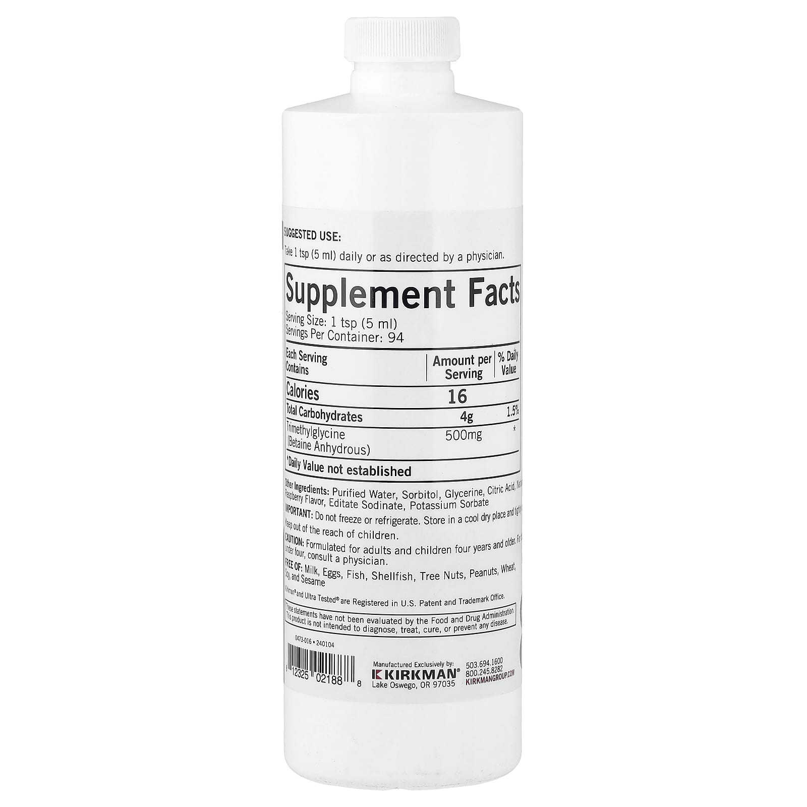 | Триметилглицин (бетаин безводный) | 500 мг | * |