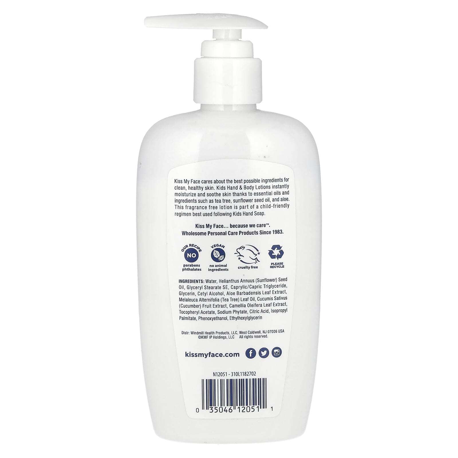 Kiss My Face заботится о самых лучших ингредиентах для чистой и здоровой кожи. Детские лосьоны для рук и тела мгновенно увлажняют и успокаивают кожу благодаря эфирным маслам и таким ингредиентам, как масло чайного дерева, подсолнечное масло и алоэ. Этот лосьон без отдушки является частью удобного для детей средства. Лучше всего использовать его после детского мыла для рук.