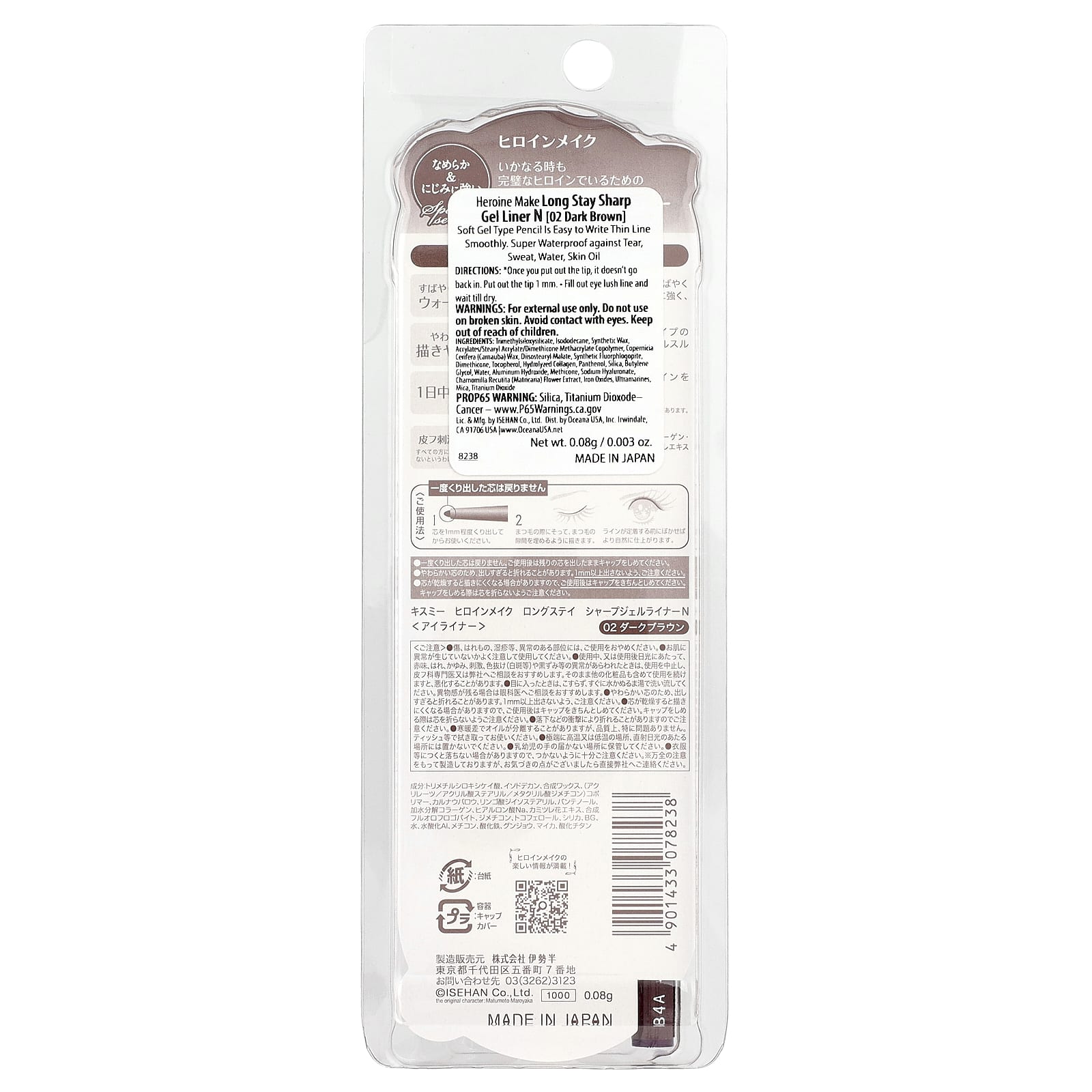 Мягкий гелевой карандаш легко и плавно рисует тонкие линии. Супер водостойкий от слез, пота, воды, жира на коже.
