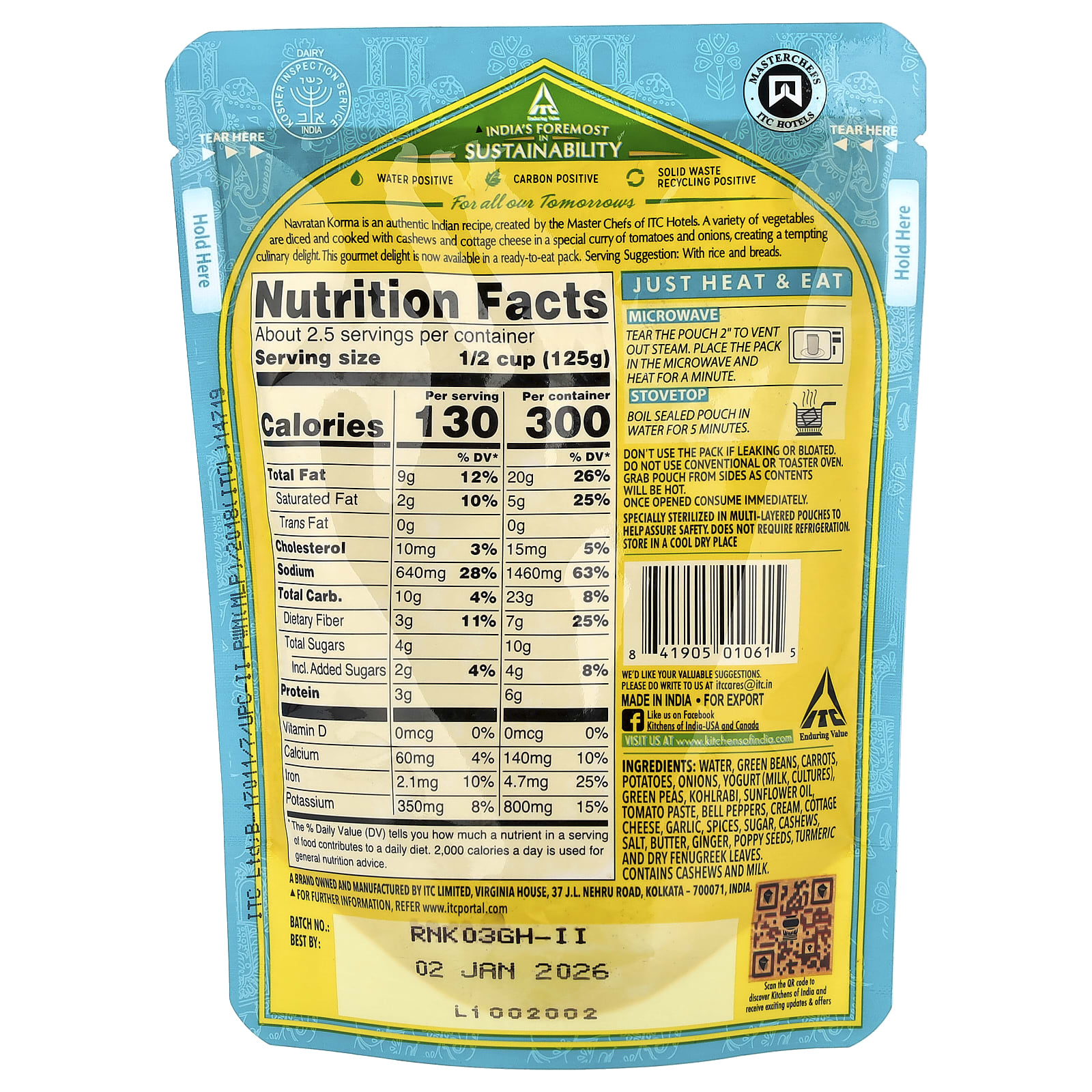 Навратан корма — это аутентичный индийский рецепт, созданный шеф-поварами компании ITC Awards. Разные овощи нарезаны кубиками и приготовлены с кешью и творогом в специальном соусе карри из томатов и лука, создавая заманчивое кулинарное наслаждение. Это изысканное наслаждение теперь доступно в упаковке, готовой к употреблению.